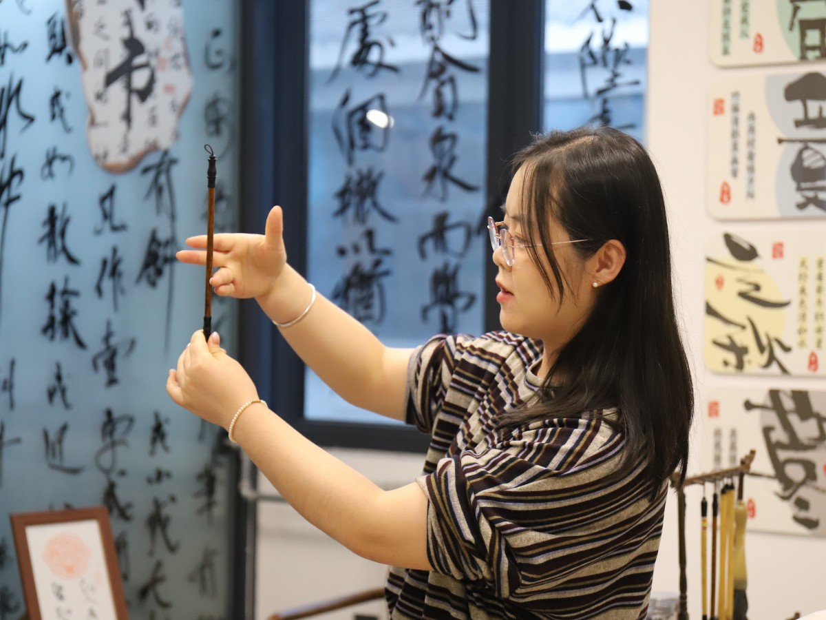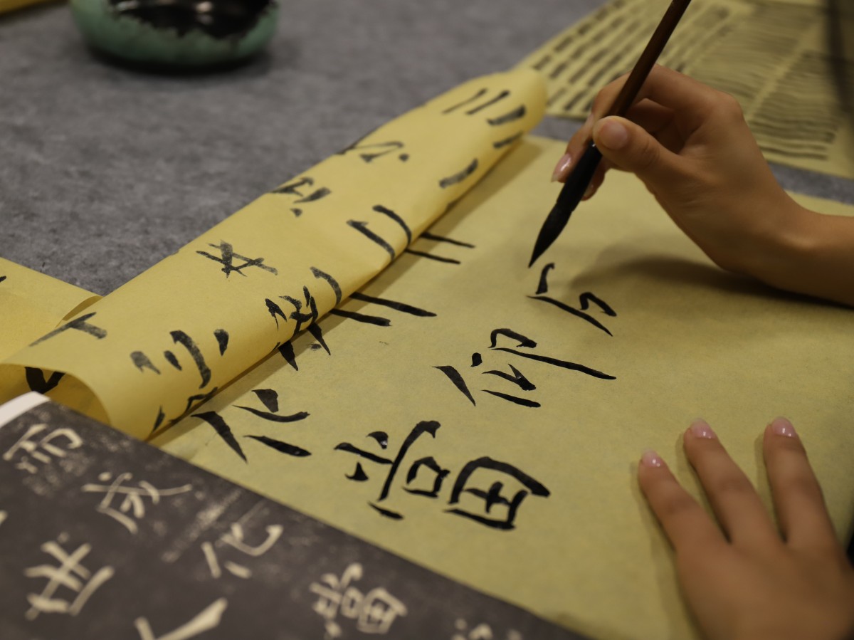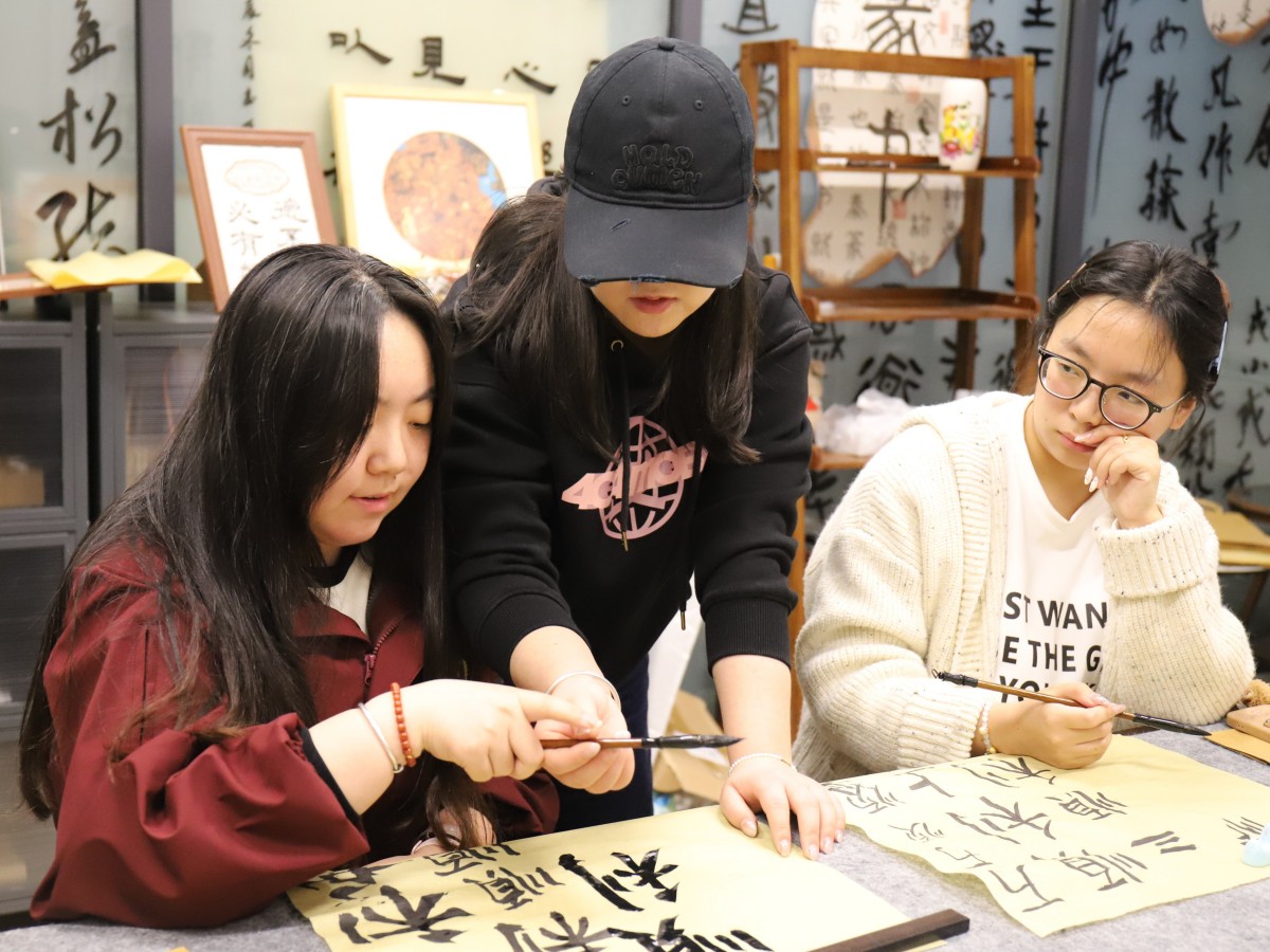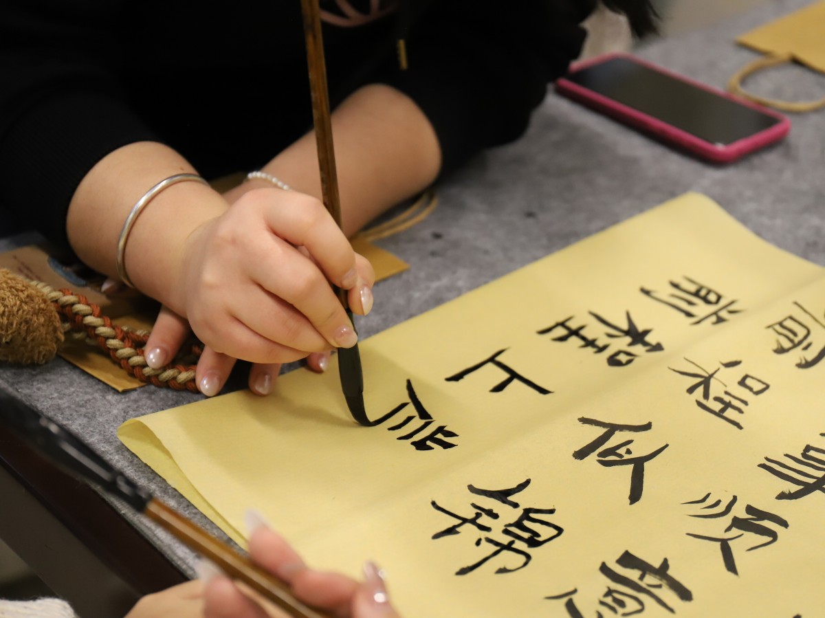 在侯老师的细致指导下,参加者亲身体验了隶书基本笔画的练习,通过毛笔与纸张的书写形态以及运笔的力量感,完整感受隶书的结构与气韵。同学们在笔墨挥洒间掌握了隶书的入门技法,在横竖撇捺中触摸传统文化的温度。本次活动以实践为导向,将书法知识与动手创作相结合,为学生提供了一堂生动的美学修养课,让书法艺术真正成为连接古今、安顿身心的文化载体。