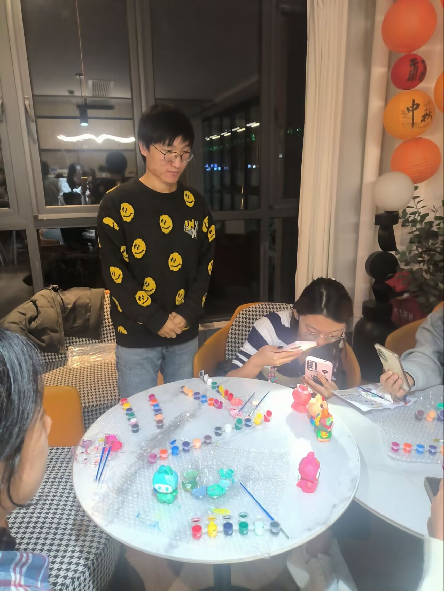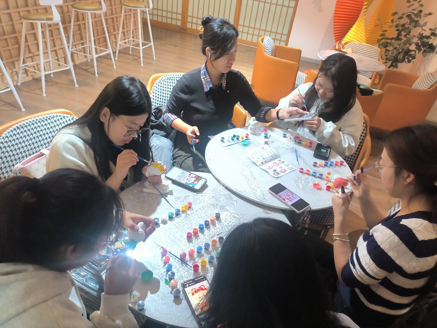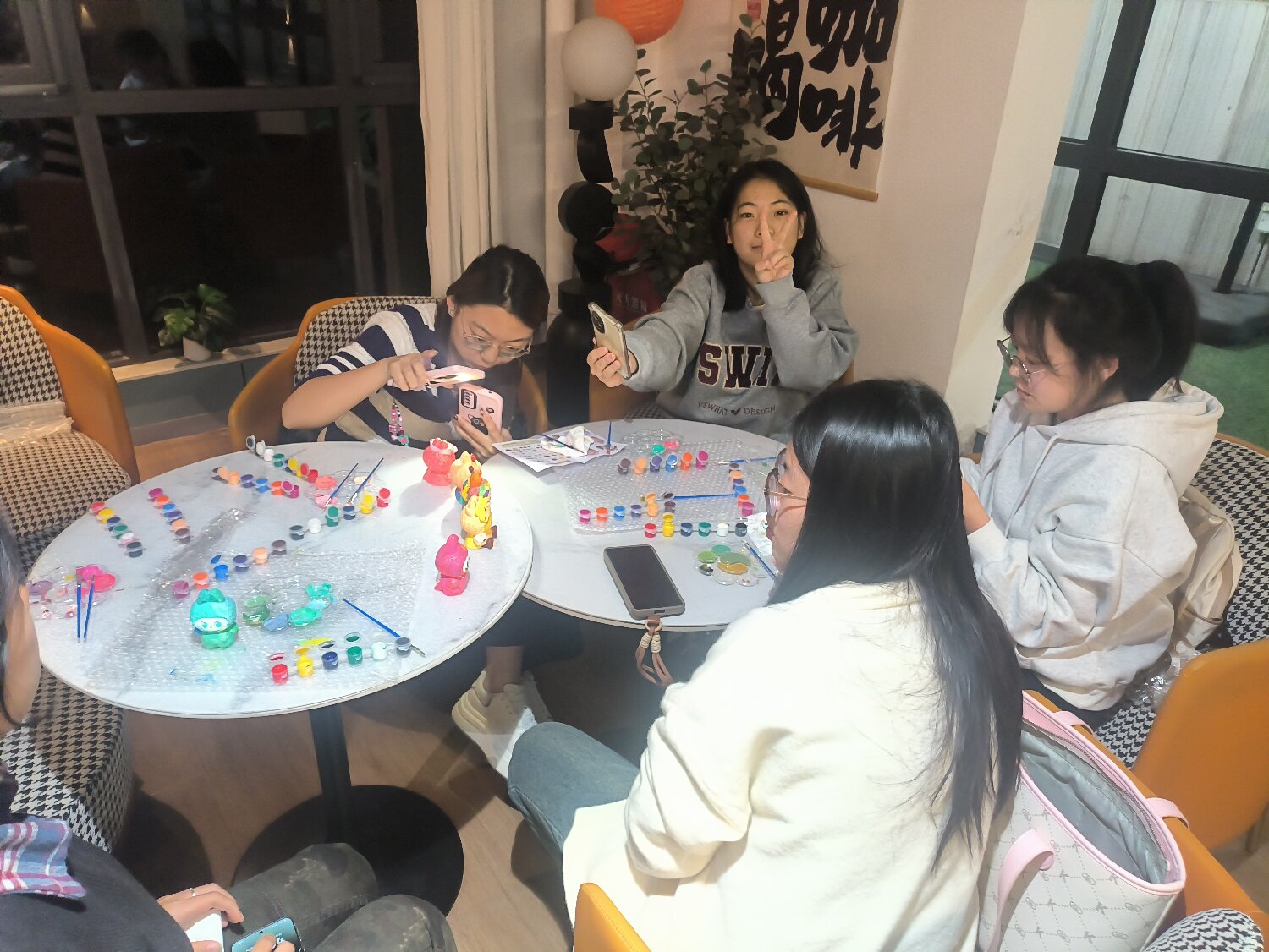 10月16日晚上,马克思主义学院教师、信息工程学院全生异科导师侯佳伟在毣谷书院半杯故事馆主持开展了一场别开生面的“色彩绘初心,美育润赤忱”拉布布石膏创意手工涂鸦活动。六名来自数据专业的学生齐聚一堂,在艺术创作中感受红色精神的时代脉动,在色彩勾勒中体验美育的独特魅力,实现了革命传统教育与审美素养培养的有机融合。
