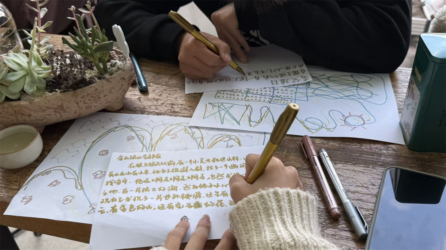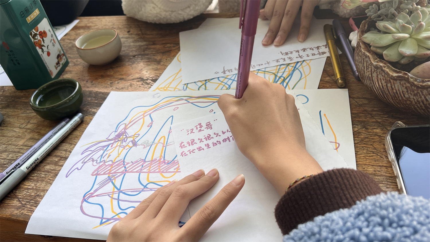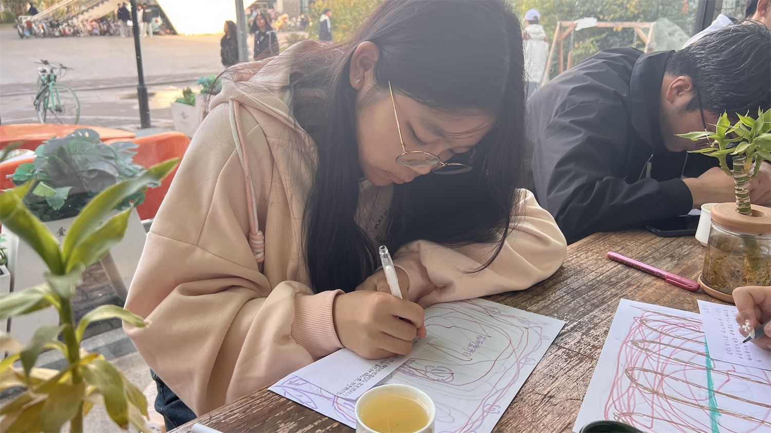 原本抱着“喝杯茶放松”的心态来的,没想到绘画和写故事这么解压!和陌生同学一起分享作品时,突然觉得“情绪不用藏着”,老师教的深呼吸技巧我当天就用上了,特别实用。