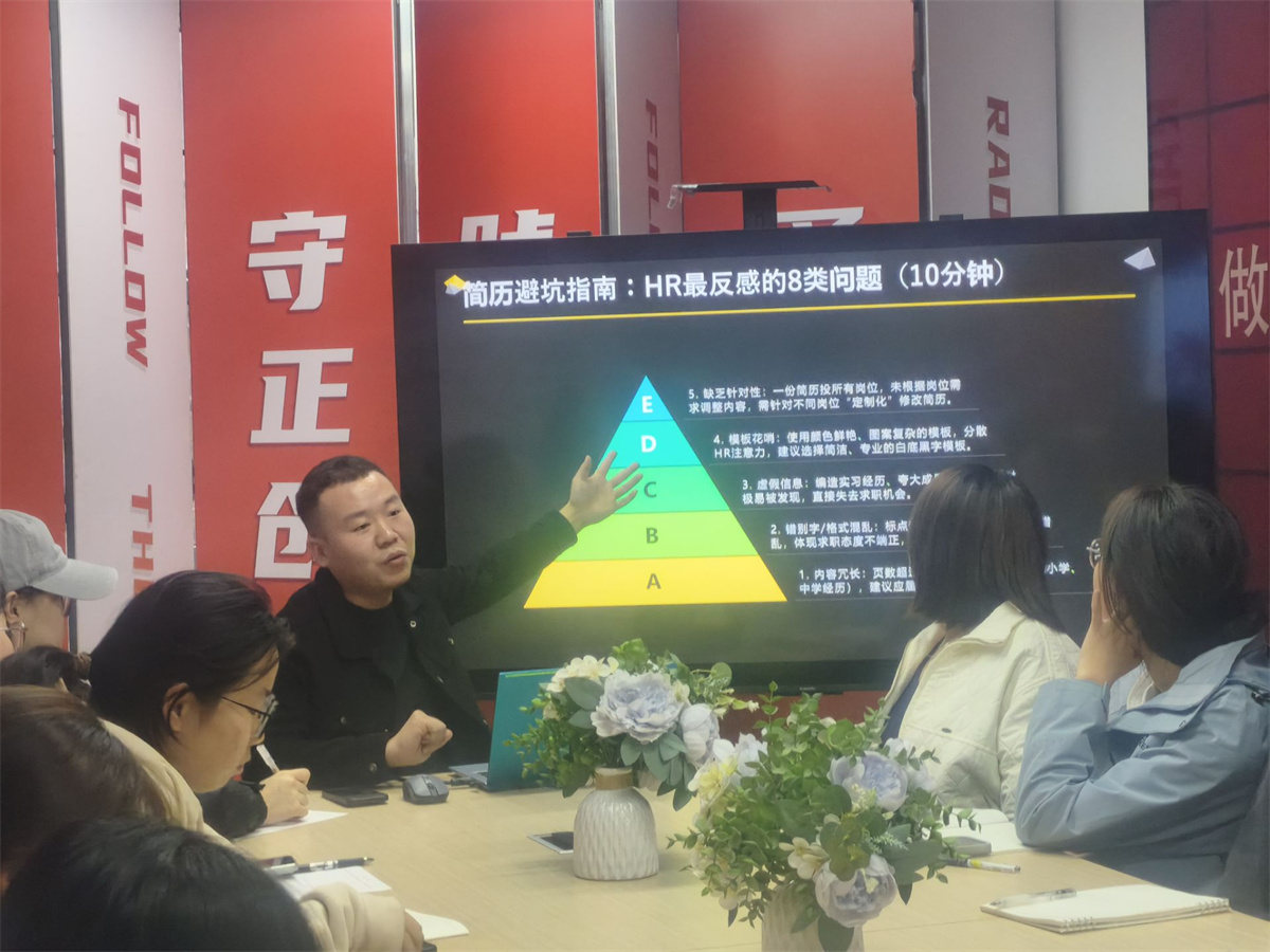 “知己知彼,百战不殆!”史老师现场揭秘招聘官眼中的“简历致命雷区”,每一条都精准戳中求职者痛点:千篇一律的模板直接拉低印象分,内容堆砌如“信息乱麻”让人抓不住重点,错别字、格式错乱暴露粗心短板,夸大虚构的经历一查便破,技能栏满屏“精通”却无半句佐证,连“新建简历.doc”这类随意命名都成了隐形减分项!贾馥瑞同学恍然大悟,忍不住惊呼:“原来我一直踩坑!”这些真实的反馈恰似一面清醒镜,照见过往疏忽的同时,更精准点亮了简历优化的核心方向。