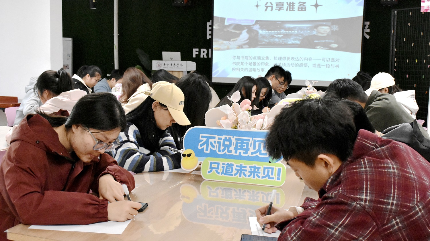 关于在书院的自身成长,贾志浩同学分享了自己在书院的故事,“书院不仅是学习的场所,更是一个充满温暖与支持的大家庭,在这里,我学会了如何清晰地表达观点,也学会了如何倾听他人的声音。每一次分享都是一次成长的机会,希望大家珍惜在书院的时光,让每一次发声都充满力量。”活动末尾,同学们在“书院印象”卡片上写下对书院的感受、祝福或期待。他们用简短文字记录下内心的声音,随后将卡片夹在网格架上,共同打造一面“书院印象墙”。这面墙不仅是活动的纪念,更是书院文化的缩影,承载着每一位同学的心声。