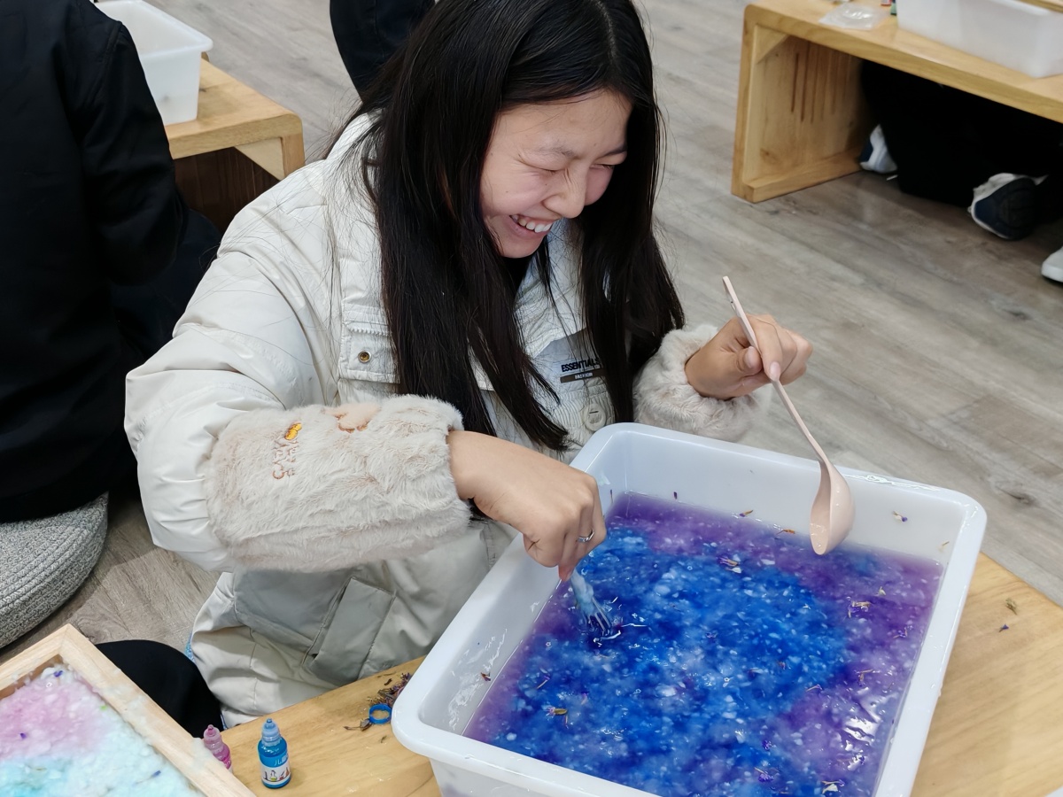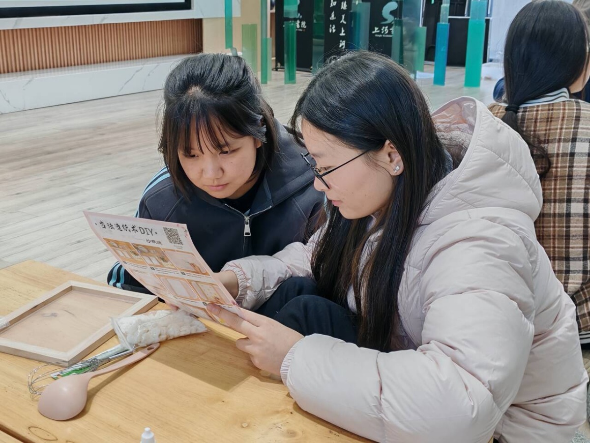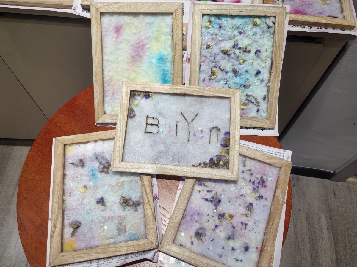 活动进入核心环节——“艺术魔法”创作阶段。一段3分钟的纸浆造纸教学视频率先揭开了非遗技艺的面纱,“塑形技巧”与“上色秘诀”通过直观演示清晰呈现,参与者全神贯注,沉浸于传统工艺的精妙之中。随后的“纸浆变变变”创作中,大家将游戏环节赢取的纸浆、颜料、干花等材料转化为艺术语言,亲手赋予创意以形态。干花被巧妙嵌入纸浆,定格为带有自然呼吸的立体画作;颜料自由挥洒,勾勒出独具个人风格的色彩篇章。