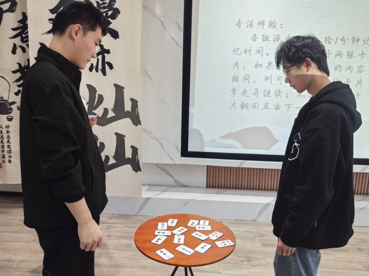 随后的游戏竞技环节悬念迭起,将现场气氛彻底引燃。首轮“筷”手快眼接力赛率先点燃战火,各二人战队需在规定时间内完成“夹珠入碗”挑战。赛场上,队员们屏息凝神,巧手运筷夹取滑溜的弹珠,最终根据排名,优胜队伍赢得了3至5包基础纸浆,为后续创作奠定了关键的原料基础。紧接着的“记忆对对碰”则是一场专注力的终极考验。参与者拥有1分钟时间极限记忆多组卡牌位置,随后两两展开紧张刺激的翻牌对决。每一次成功的配对都引发阵阵欢呼,胜出队伍成功将缤纷颜料收入囊中,为作品注入了鲜活的色彩生命力。