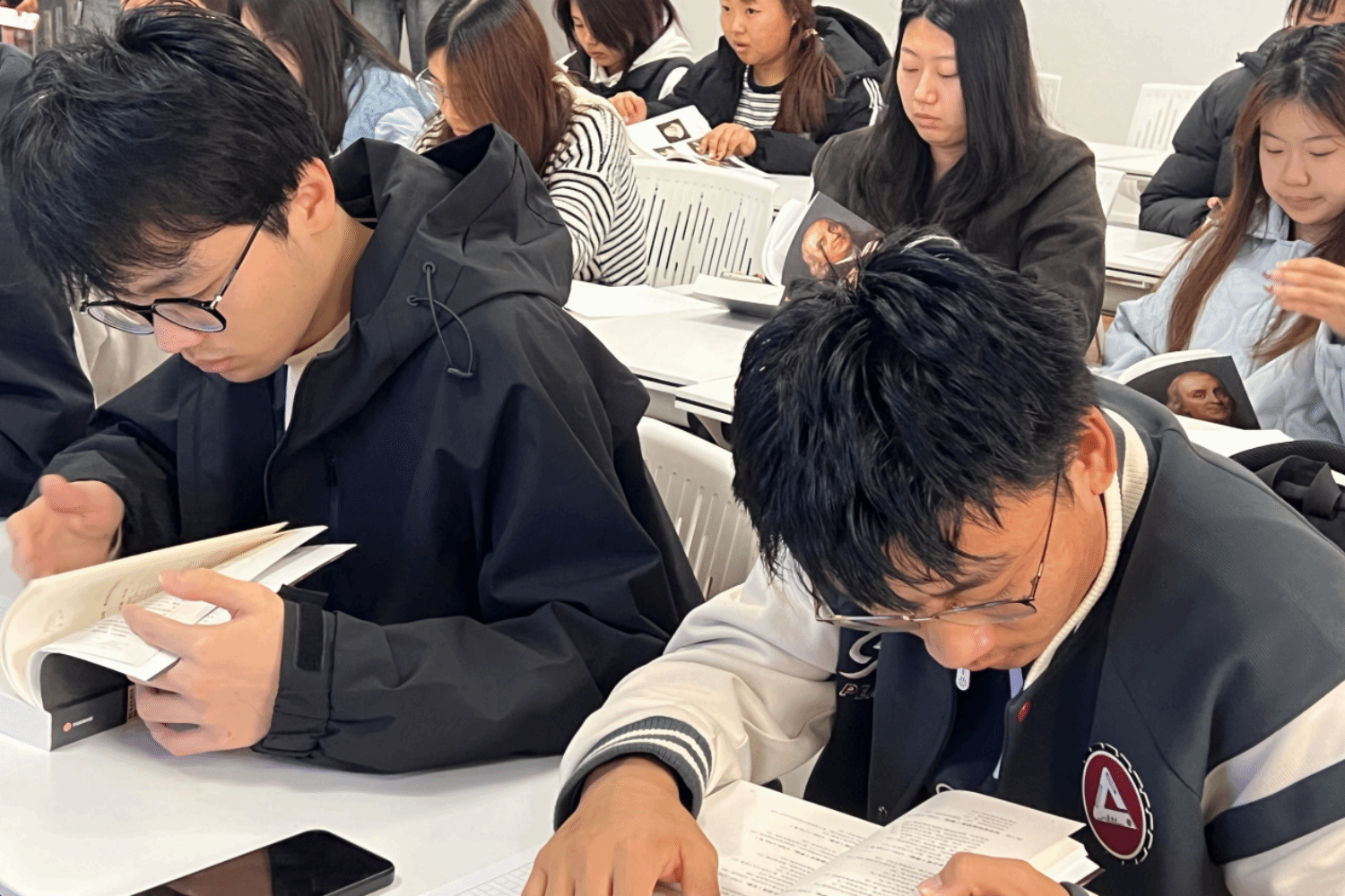 “数字炸弹”的倒计时响起,会议室瞬间被点燃。三位幸运同学在20分钟内,将书中的智慧与自己的经历巧妙“缝合”。第一位同学被“个人努力,还是上帝的仁慈”深深触动,富兰克林那句“我从未见过一个勤奋的人抱怨命运”,让他对“努力”的价值有了更深的认同。另一位同学从“性格”章节中得到启发,领悟到自律的真谛在于将缺点视为可修正的习惯。第三位同学则将“理性动物”的准则运用到日常,开始用任务清单管理学业,体会到自律让生活更有序。游戏尾声,秦老师提炼出富兰克林的“十三项美德”——节制、缄默、秩序、决心……这些美德在年轻的声音中重新被唤醒。