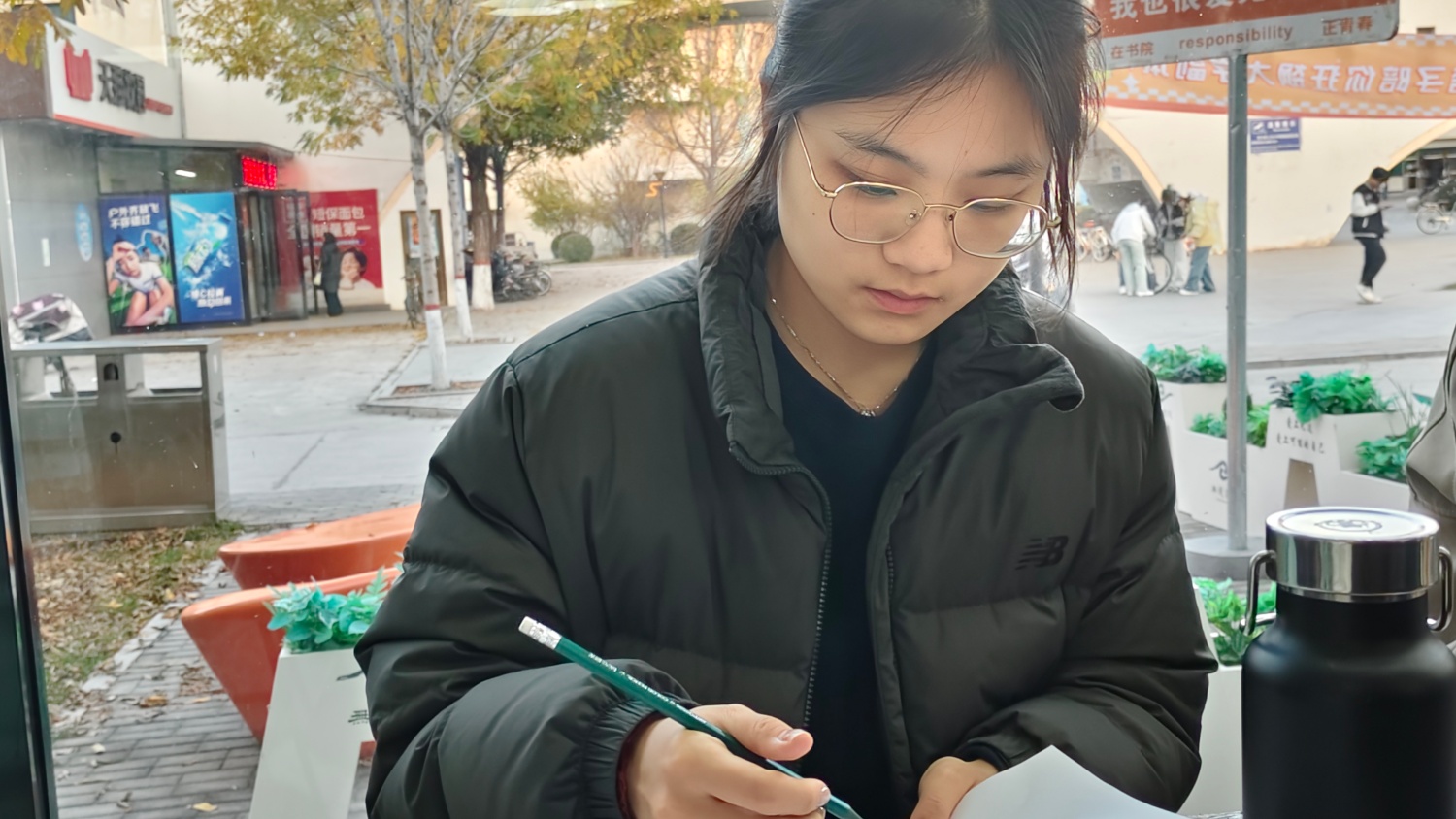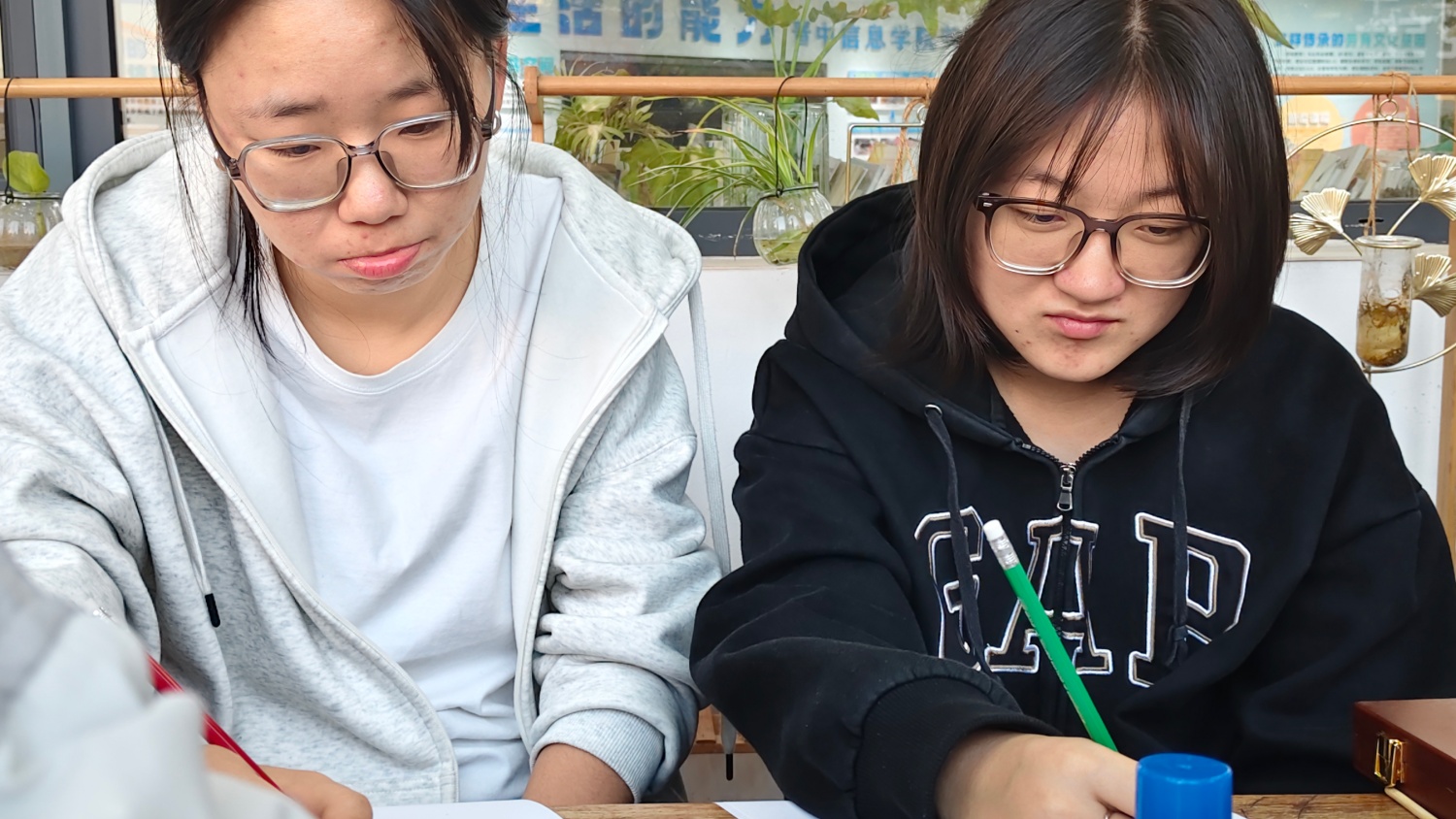 11月14日,我又踏入了书院一楼的BIAN·花房。下午的阳光正裹着茶香漫进来,桌上的白瓷茶杯冒着细烟,竹篮里的彩铅和刮刮画泛着暖光,15个座位已经坐满。“写下最近让你沉重的事,不用给任何人看”,赵小芳老师的声音轻如茶烟。我握着笔,让那些积压的烦恼顺着墨水洇在纸上,社团的待办事项、与朋友的小摩擦……这张纸成了最柔软的容器,接住了我藏了一周的“重量”。