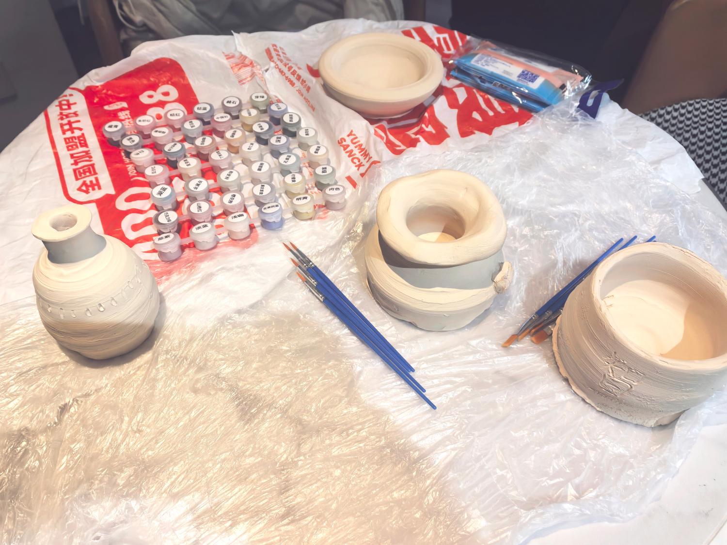 如果说塑形是赋予陶土骨架,那上色便是为作品注入灵魂。当画笔蘸取釉料,轻触素坯的瞬间,我便深知这不仅是色彩的填充,更是审美与耐心的双重考验,让我在一笔一画中,收获了别样的创作体悟。