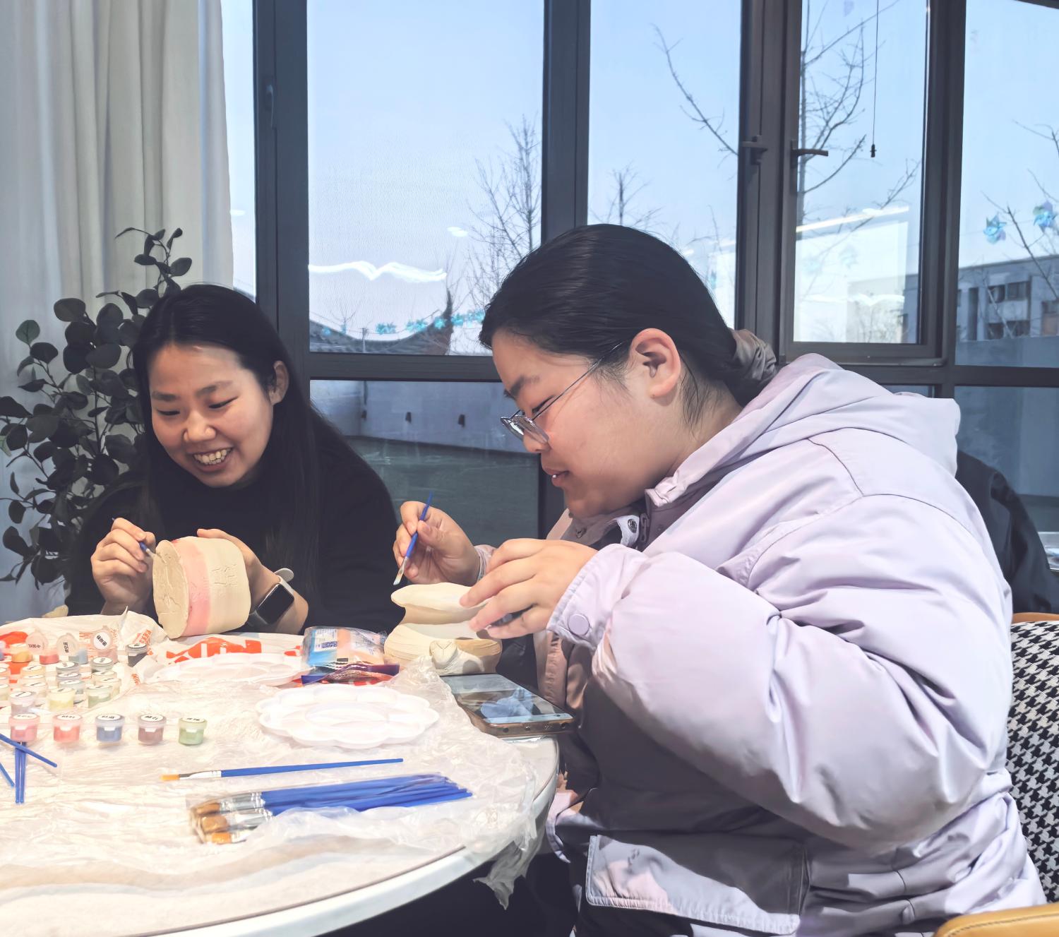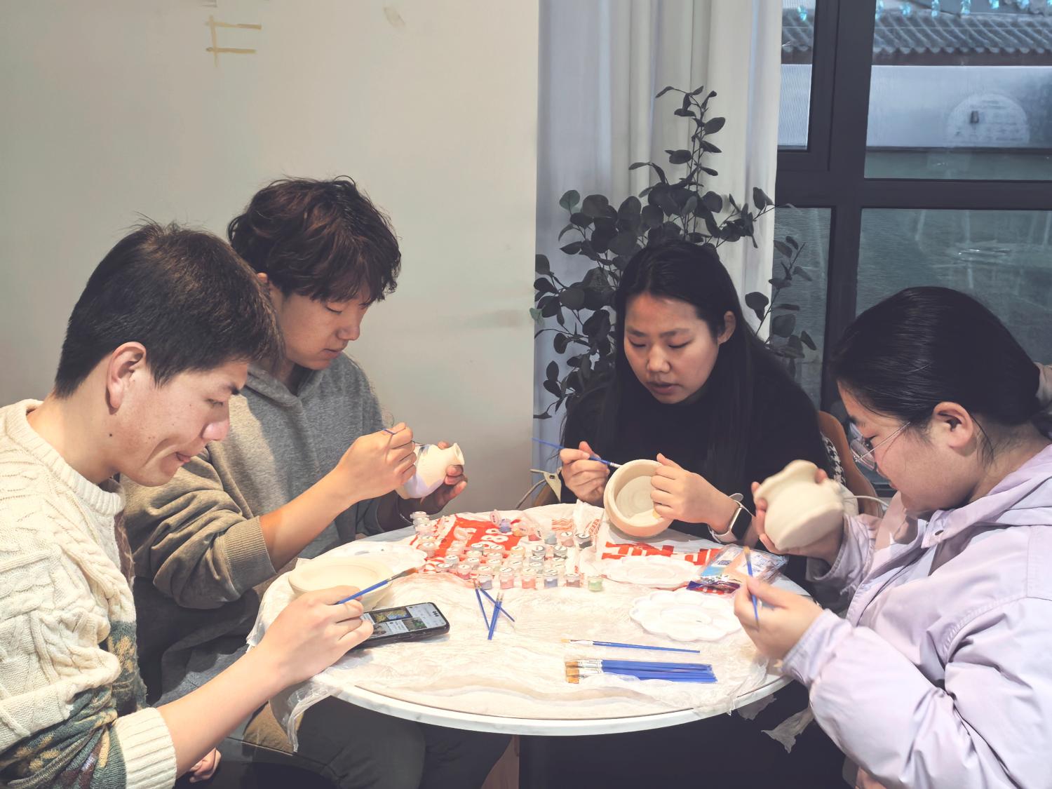 听着曲子,握着刷子与老师、同学描摹陶瓷纹路的时刻,外界的喧嚣仿佛都与我无关。从勾勒轮廓到填充色彩,每一步都是与陶瓷的对话,也是与内心的相处。手工的意义,从不止于完成一件作品,更在于专注当下的过程——接纳不完美的笔触,享受创作的纯粹,这份沉浸式的平静,是快节奏生活中难得的小确幸!