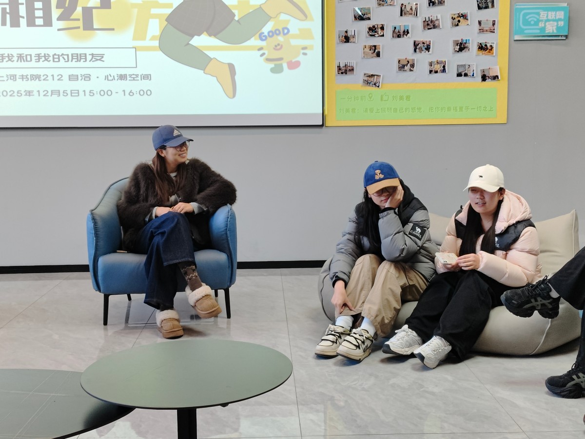 冬日暖阳映照青春活力,挚友携手共赴协作之约。12月5日15:00,“‘河’你同行·开箱纪(第88期):我和我的朋友”活动在上河书院212 自洽·心潮空间开展。本次“我和我的朋友”主题派对以“一人报名,两人同行”的创新参与模式与精心设计的趣味协作环节,吸引了众多学子结伴参与。活动聚焦朋辈默契培养与情感联结,通过一系列有趣活动,为同学们打造了一段充满欢声笑语、洋溢青春活力的午后互动时光。
