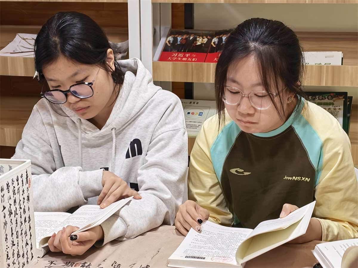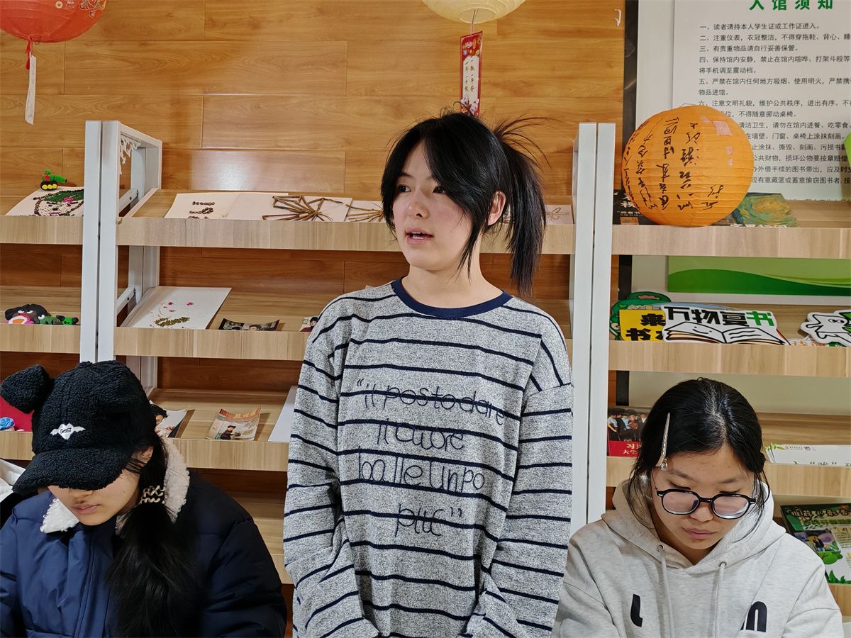 沉浸式阅读后,“成长共鸣分享”环节掀起交流热潮。主持人以“彭蕾的成长中哪处细节最戳你”引导思考,同学们纷纷举手:经管2502班董烨蓉同学谈到彭蕾跨界转型时始终坚守目标的态度,深有感触地说:“我选了一门跨学科选修课,初期因知识体系陌生、学习难度大屡屡想放弃,刚读完书中她跨界突破的经历,才真切体会到任何领域的跨越都离不开坚持,我将咬牙跟着课程节奏逐步钻研,坚持到底!”;食安2502班郝王煦同学则被她“深耕专业+持续赋能”的理念触动,分享道:“之前攻克高数难题时屡屡受挫,读完彭蕾深耕领域的故事,我深刻明白了坚持的意义,哪怕每天多弄懂一道题,慢慢积累也能突破瓶颈”。现场的情感共振,让书本里的坚持力量转化为自身成长的动力。
