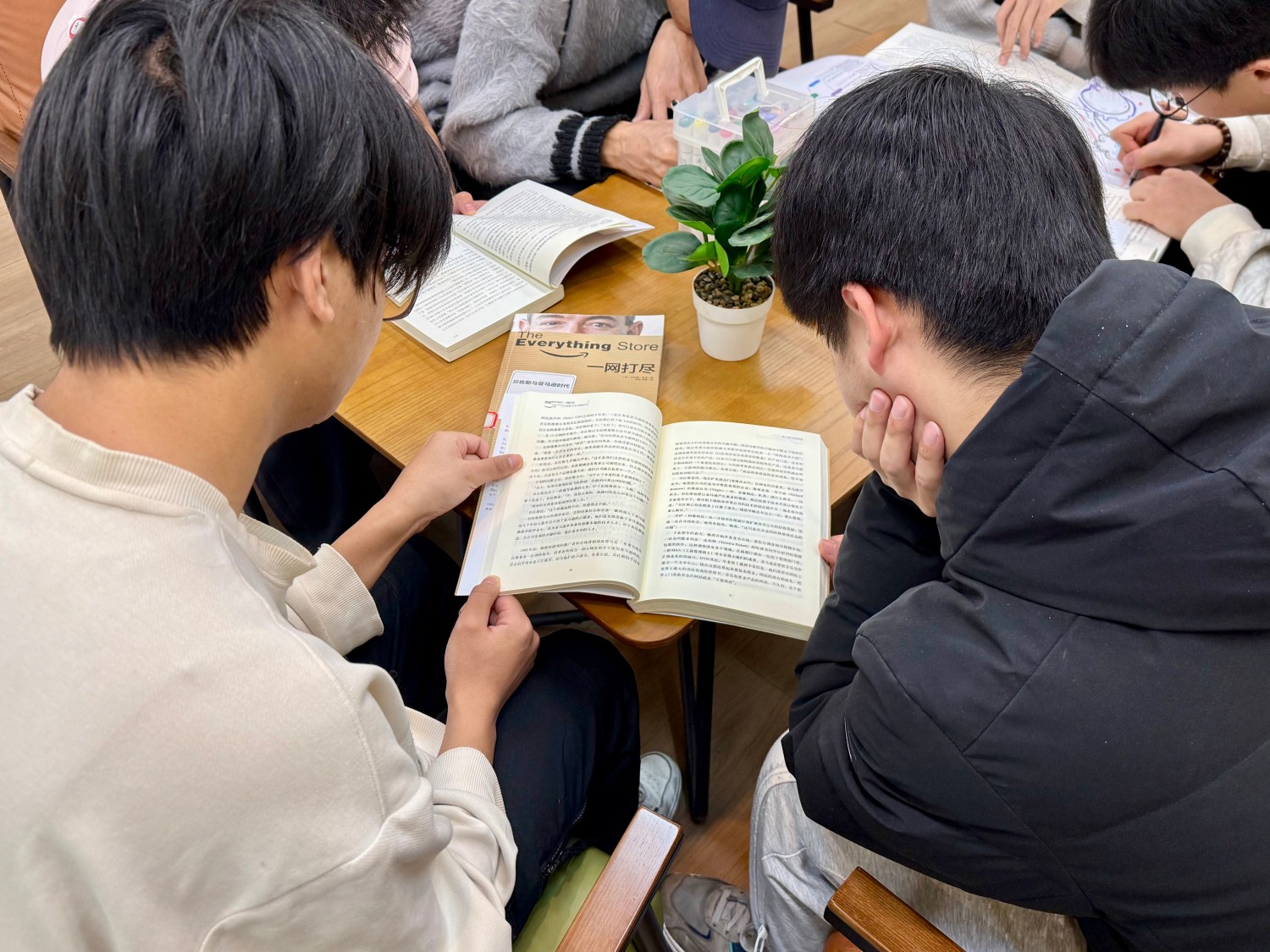 灯光落在书页上,一行行文字像被点亮的代码,在理工男生的眼中缓缓“运行”。作为理工科学生的毣谷书院全生异科导师高雅姝老师与智工青年于11月17日上午在毣谷书院胶囊书局共同开启了一场别开生面的大咖阅读“纸页上的“商业系统工程”:和智工学子一起拆解《一网打尽》读书会”。书页翻动的声音,在安静的阅读空间里格外清晰。平日里与算法、电路、机械打交道的他们,第一次以“产品经理”“工程师”“创业者”的多重身份,走进亚马逊的成长史,在纸页间拆解一家互联网巨头的底层逻辑。