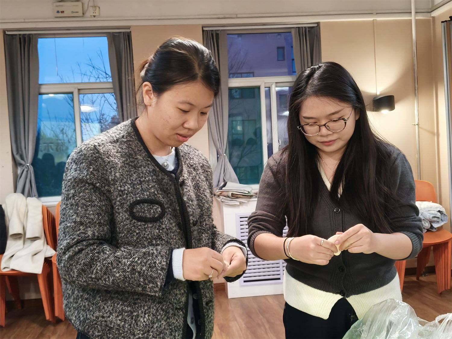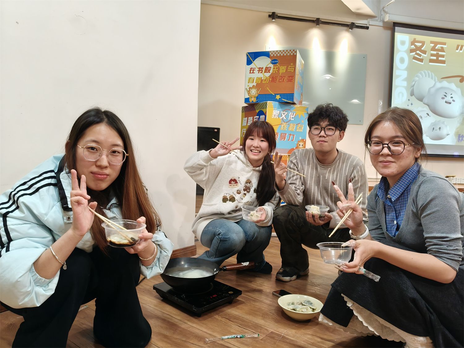 “快来包饺子啦!” 随着一声吆喝,现场瞬间切换为温馨满满的冬至饺子宴,暖香瞬间包裹了整个空间。大家围聚成圈,指尖翻飞间,一个个带着灵动褶皱的“小月牙”、圆滚滚的胖饺子整齐列队,偶尔几个模样俏皮的小包子混在其中,惹得众人笑意盈盈。画面转到206零卡·轻食工坊,几位伙伴守着灶台翻炒家常菜,锅铲碰撞间,番茄炒蛋的酸甜、青椒土豆丝的爽脆、蒜蓉油麦菜的清香接连飘出。热油滋滋作响,蒸汽氤氲升腾,盘盘家常菜被端上桌时还带着滚烫的温度,满桌都是热乎乎的烟火气。大家一边忙活一边分享书院趣闻,畅谈生活日常,分工协作的默契、毫无隔阂的畅谈,让每个角落都充满了家的温暖。