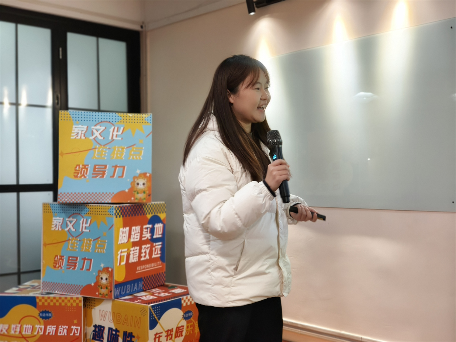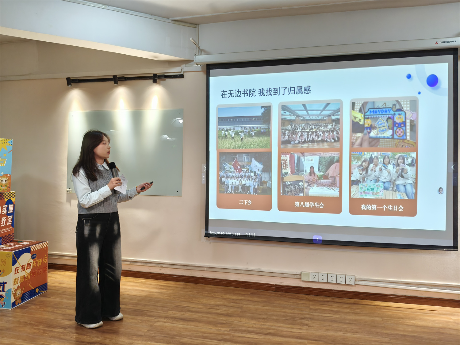 无边书院综合办主任雷淼老师温暖的期许也随之流淌开来。雷老师以“初心与成长”为脉络,传递出两层深意:其一,是“热情与责任”的共生力量——无边人的热情,就藏在每一次全力以赴的奔跑里、三下乡的风雨同行中,也藏在楼道间那句轻声的问候里,而这份热情唯有与责任相伴,才能沉淀为成长的坚实底气;其二,是“变与不变”的初心坚守——纵使身份有了些许转变,但亲近大家、 关切书院的初心从未改变;而我们对书院的热爱、对伙伴的情谊、对责任的坚守,更永远不能改变。她叮嘱我们,无论前路何方,都要延续这份荣誉感,守护好无边这个温暖的家园。