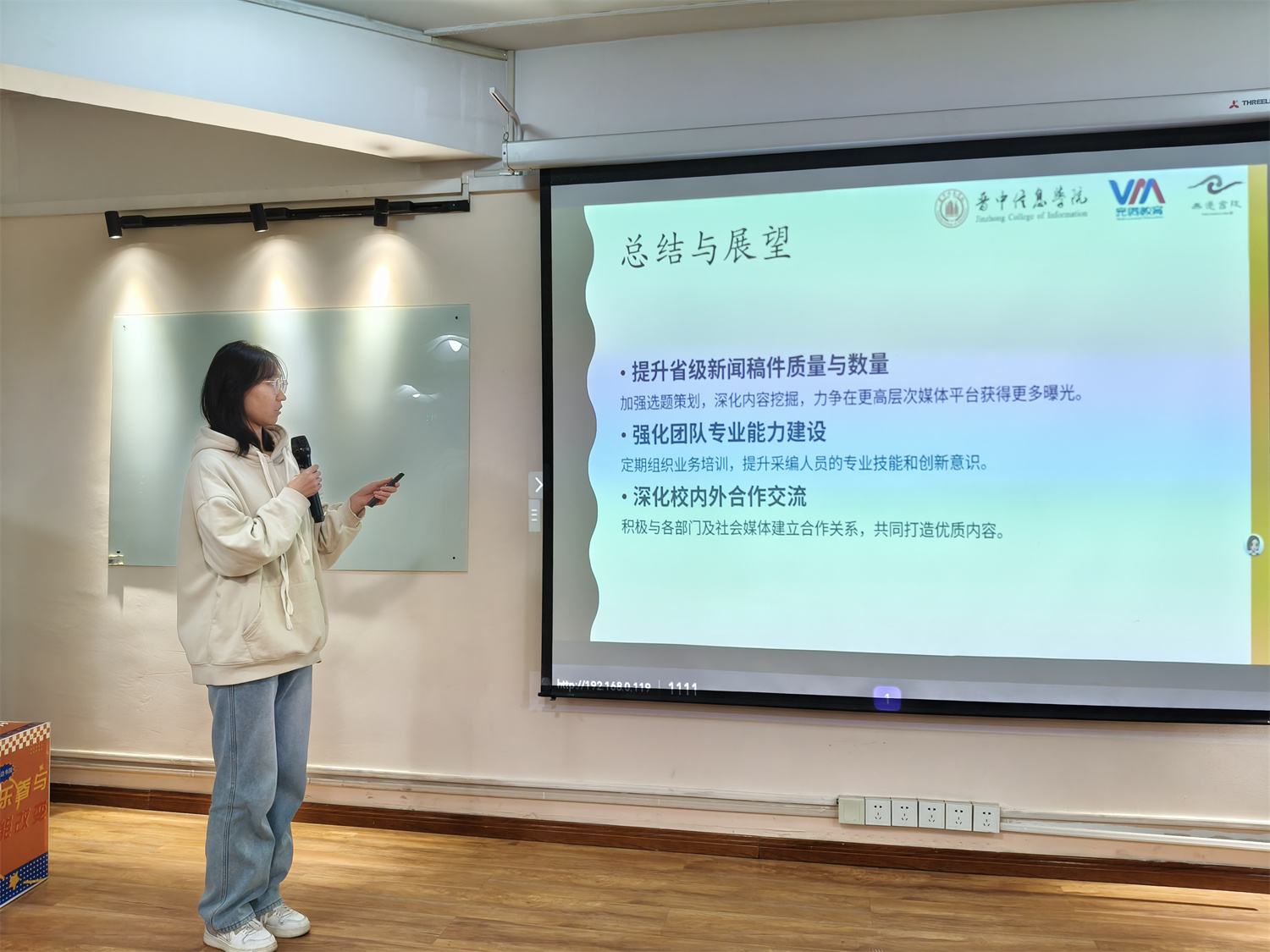 主席汇报环节,更是为这场成长回望注入了满满的期许与力量。邱靖棋以幽默风趣的风格,为我们准备了“寒假计算机二级考试日日攻”的预想,轻松的话语驱散了期末备考的焦虑,更点燃了大家“全力冲刺、一举通关”的信心;许海鑫则以“热爱”为关键词,串联起自己在书院的成长点滴,从初入时的探索到如今的担当,字里行间的深情与热忱,让我们更深刻地理解“以热爱赴山海”的意义,也对下学期的征程满怀憧憬。
