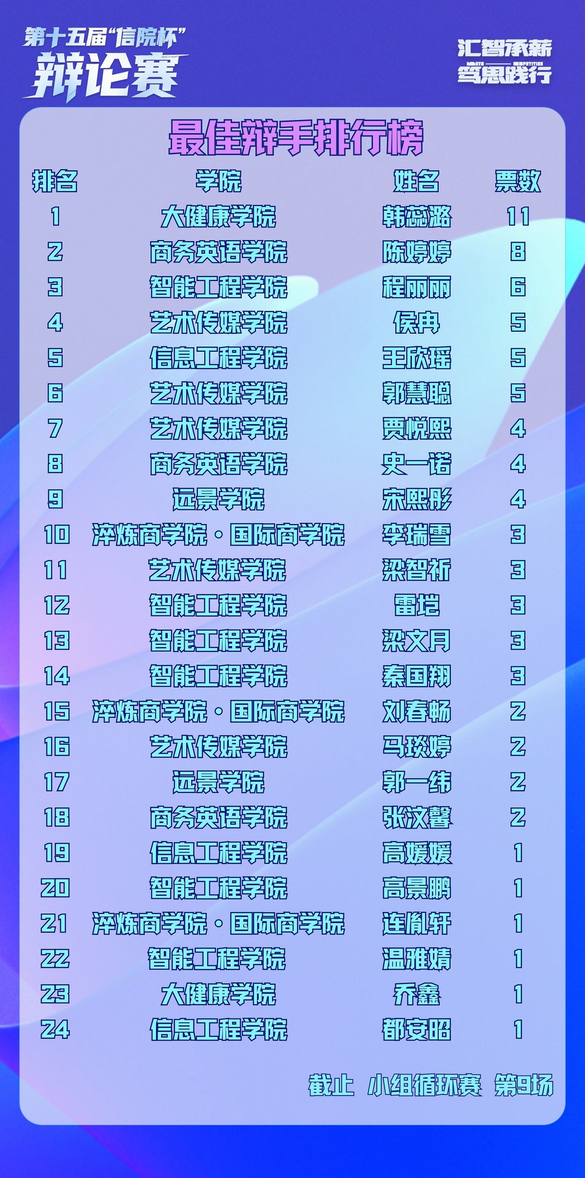 积分实时更新,优秀辩手风采一览