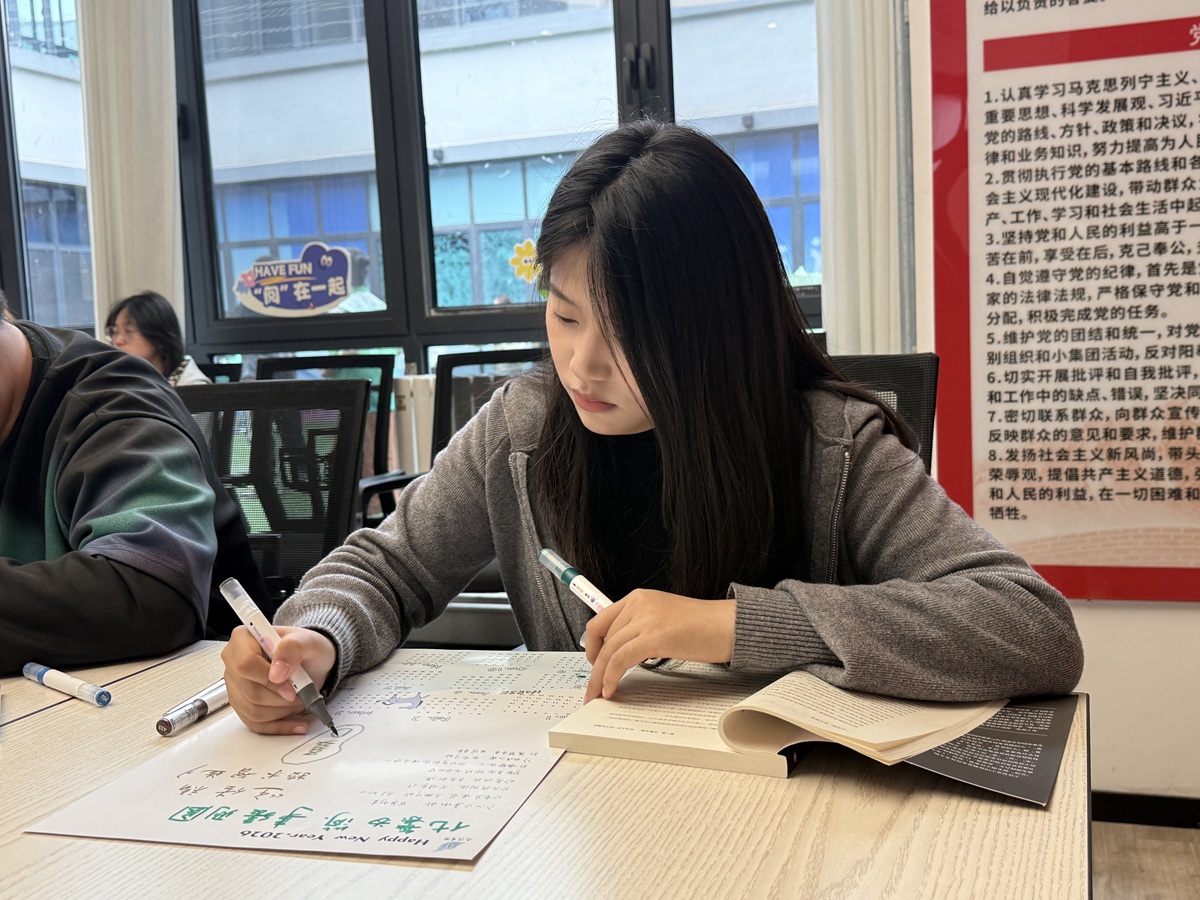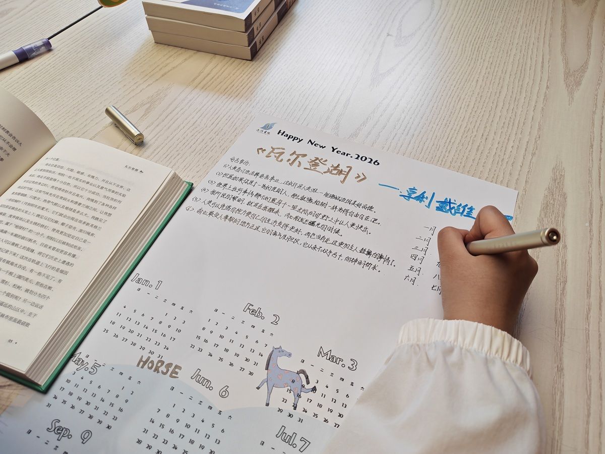 活动尾声,同学们捧着自己亲手制作的日历,围坐一圈分享创作心得。一位选择《瓦尔登湖》的同学感慨道:“以前总觉得经典离自己很远,但今天通过阅读和手作,我发现书中的哲思其实可以离生活很近。”另一位研读《王传福技术智造》的同学则分享:“王传福的专注与创新精神给了我很大启发,我把它画进了日历里,提醒自己未来无论做什么,都要保持对技术的敬畏与热爱。”张楠老师在总结时说道:“今天的活动,我们既是在读书,也是在读自己。希望这本亲手制作的日历,能陪伴大家走过2026年的每一个日子,让书香与成长日日相伴。”本次“览舟咖书”活动在温馨而充实的氛围中落下帷幕。大家在短短一个多小时里,完成了一场阅读、思考与创造的深度对话——“历”阅见成长,每一本读过的书,每一次用心的创作,终将成为生命日历中最闪亮的一页。