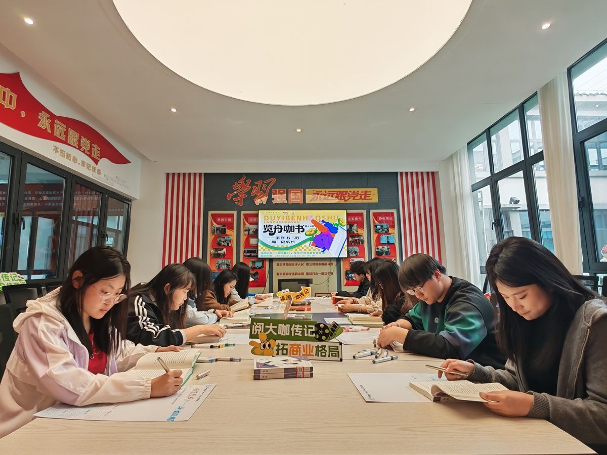 在随后的品读环节中,同学们从六本书中任选一本,静心翻阅,细细品味。有人捧起《论语》,在“己所不欲,勿施于人”的句子旁写下对处世之道的体悟;有人翻开《巴菲特传》,在投资大师的决策智慧中寻找商业逻辑的蛛丝马迹;也有人沉醉于《瓦尔登湖》的静谧文字,将梭罗的朴素哲思与当下生活悄然对照。一时间,室内只闻书页翻动与笔尖摩挲的细响,每位同学都沉浸在自己与书本的私密对话中。阅读过后,同学们拿起彩笔与纸张,将书中的灵感与自己的思考化作一幅幅涂涂画画的创作——有人用思维导图勾勒出《王传福技术智造》中的创新路径,有人用水彩描绘《瓦尔登湖》中的湖畔小屋,还有人将《销售心理战》中的核心观点凝练成寥寥数语的“商业心法”。每一张纸上,都跃动着思想与创意交织的火花。