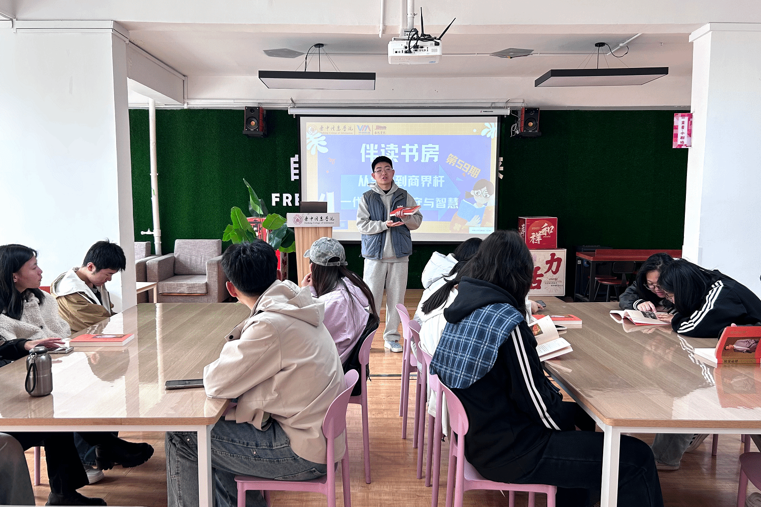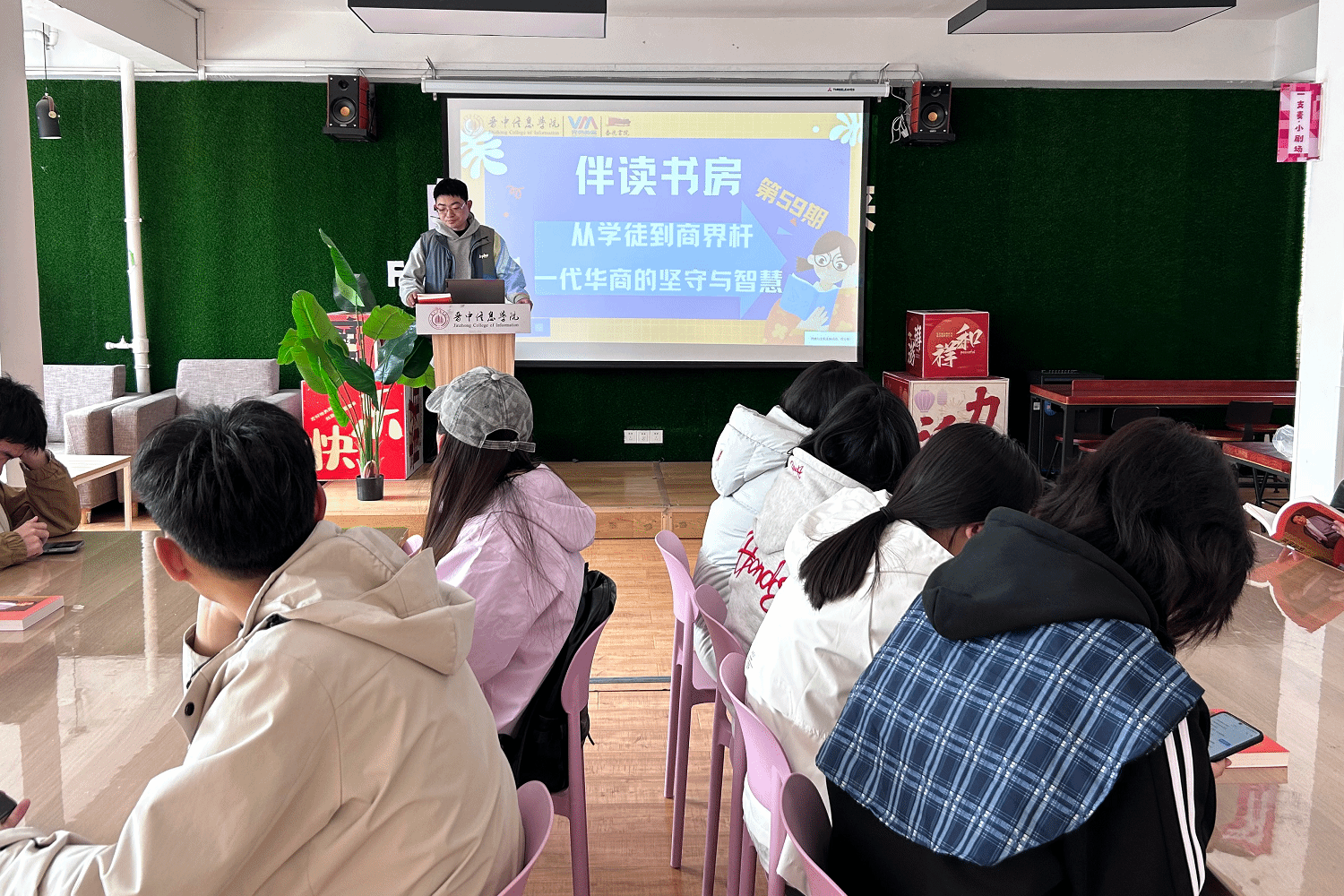 万物复苏的时候,伴着春风翻开书页,于字里行间邂逅打卡故事,期待遇见每一个向阳而生的自己。3月30日15:00-16:00,杏花书院发展导师王浩天于Lucky room举办第59期伴读书房系列活动——“从学徒到商界标杆:一代华商的坚守与智慧”。活动以背景解说、深度理解为核心,通过沉浸式共读与互动交流,让同学们在书香中感悟郑裕彤先生的传奇人生与商业智慧。