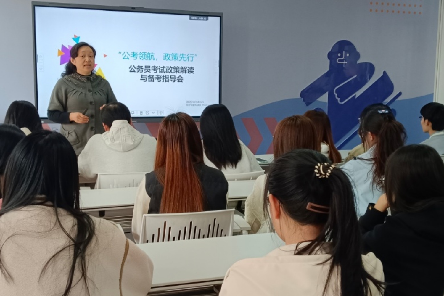 温老师特别强调,公考并非“裸考就能上岸”的捷径,科学规划才是关键。以行测为例,老师建议将备考分为基础夯实、专项突破、套题模拟三个阶段,前期主攻言语理解与判断推理的正确率,中期重点突破资料分析的速算技巧,后期通过限时训练提升答题节奏;申论方面,张老师指出不能只看不写,每周至少完成一套真题的作答与复盘,对照参考答案逐句打磨表达。互动环节中,有同学提出“行测做题速度提不上去怎么办”,金老师现场分享了“先易后难、学会取舍”的做题策略,建议在规定时间内优先完成正确率高的模块,而针对“申论大作文跑题”的困惑,则以真题为例,现场演示如何从题干关键词中提炼总分论点。