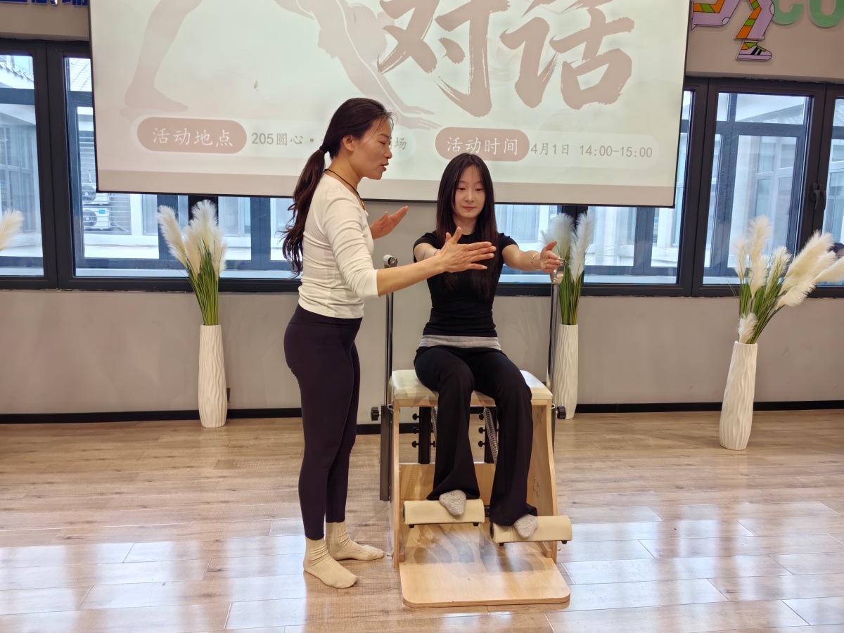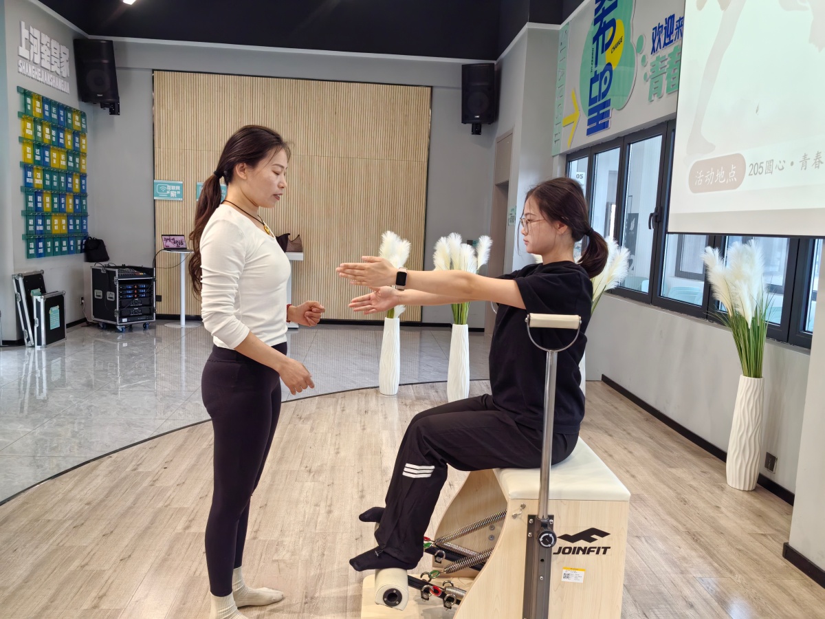 练习间隙,李育娇同学的话格外真切:“原来之前一直用肩膀使劲,难怪越练越酸,跟着老师找准核心发力点,整个人都舒展多了。”此次普拉提器械体验活动,没有流于形式,而是立足同学们日常身体痛点,用实打实的专业指导和沉浸式练习,为大家搭建了舒缓身心、优化体态、沉淀专注力的平台,让每一位同学都收获了看得见、感受得到的身心改变。在春日的舒展与专注中,他们不仅收获了轻松的体态,更在身心同频的练习里,为忙碌的校园生活积蓄了温柔而坚定的力量。