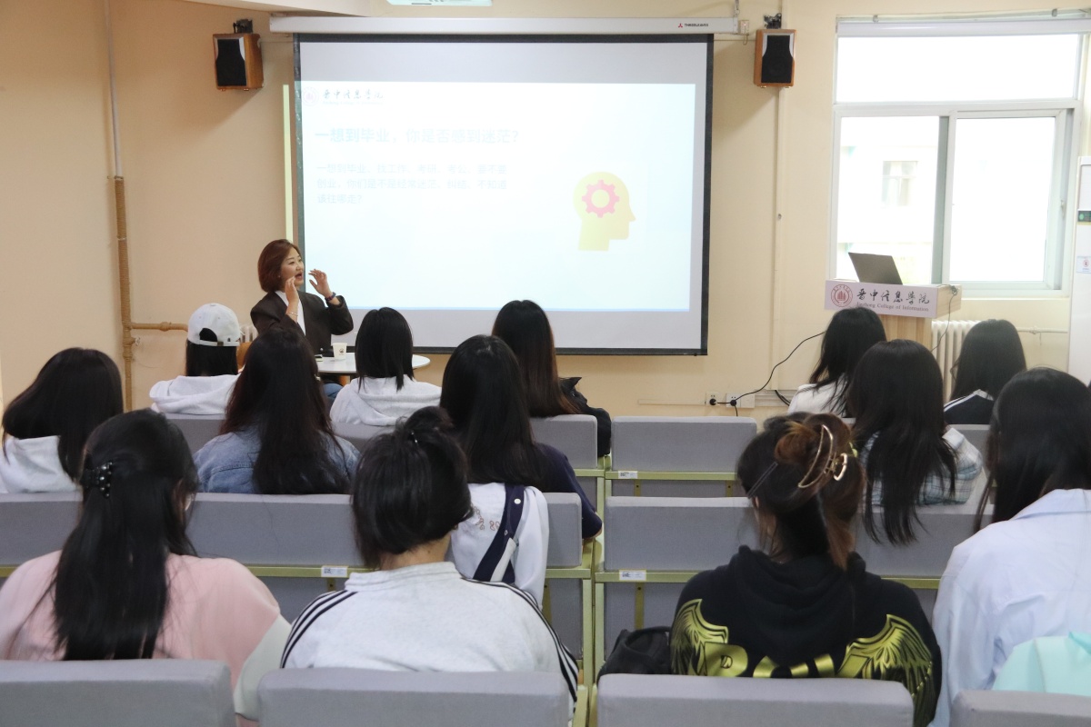 结合大学生从大一至大四的成长规律,高老师为在场同学梳理了清晰的阶段性规划路径:大一重在探索兴趣、认清自身优势;大二聚焦夯实专业技能、考取适配证书;大三明确发展方向、进行精准选择;大四全力冲刺目标、实现顺利就业,让不同年级的学生都能找准定位、稳步前行。针对不同专业学生的发展需求,活动精准分类梳理了经管、工科、文科、艺术、农林五大类专业的适配人群、核心就业方向与潜在创业路径,传递“没有差专业,只有适不适合”的理念,帮助同学们结合自身特质与专业优势,规划个性化职业发展路线。