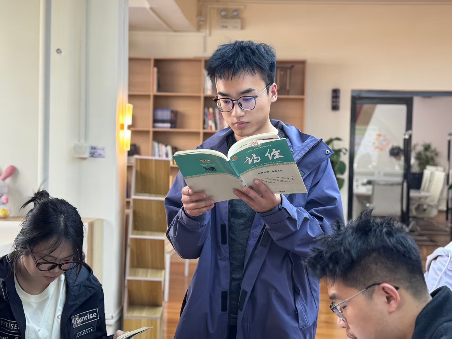 在老师系统讲解后,同学们进入沉浸式自主阅读环节。大家结合“情绪、生活、关系”三把钥匙静心品读,圈画经典诗句,认真思考如何用《诗经》名句为即将毕业的学长学姐送上祝福。现场静谧有序,书页轻响间,同学们在文字中与古人对话,感受经典跨越时空的力量。