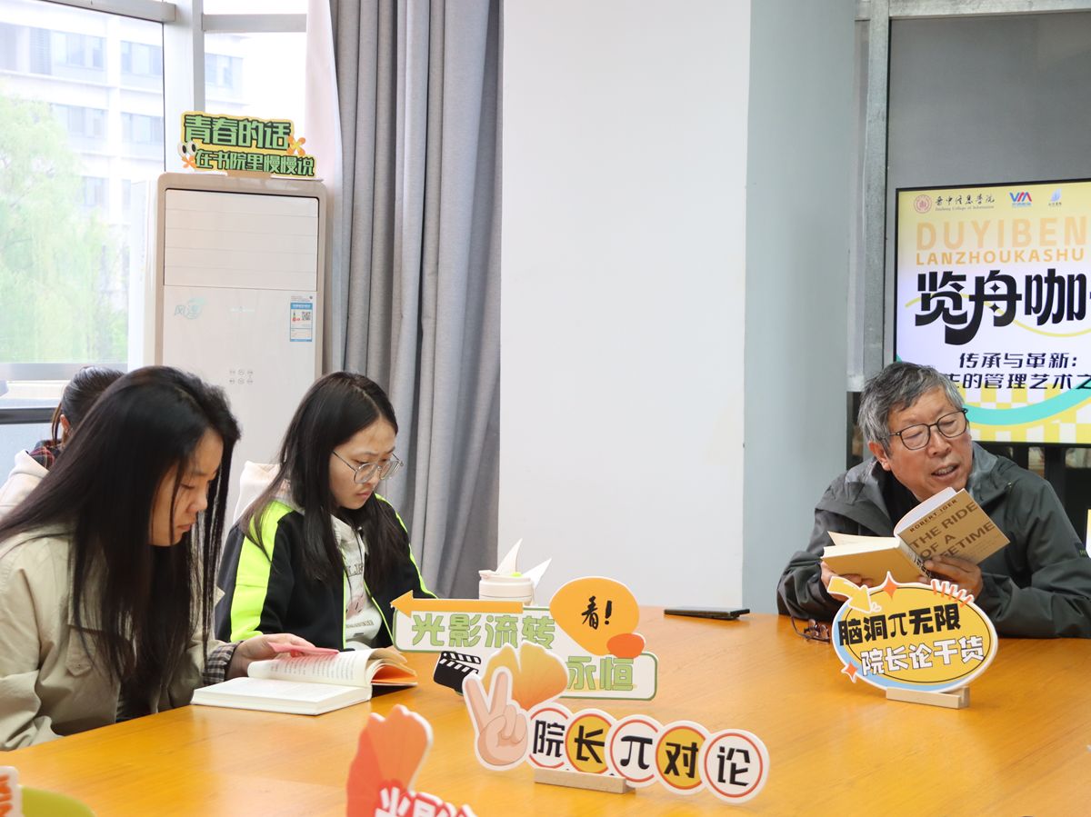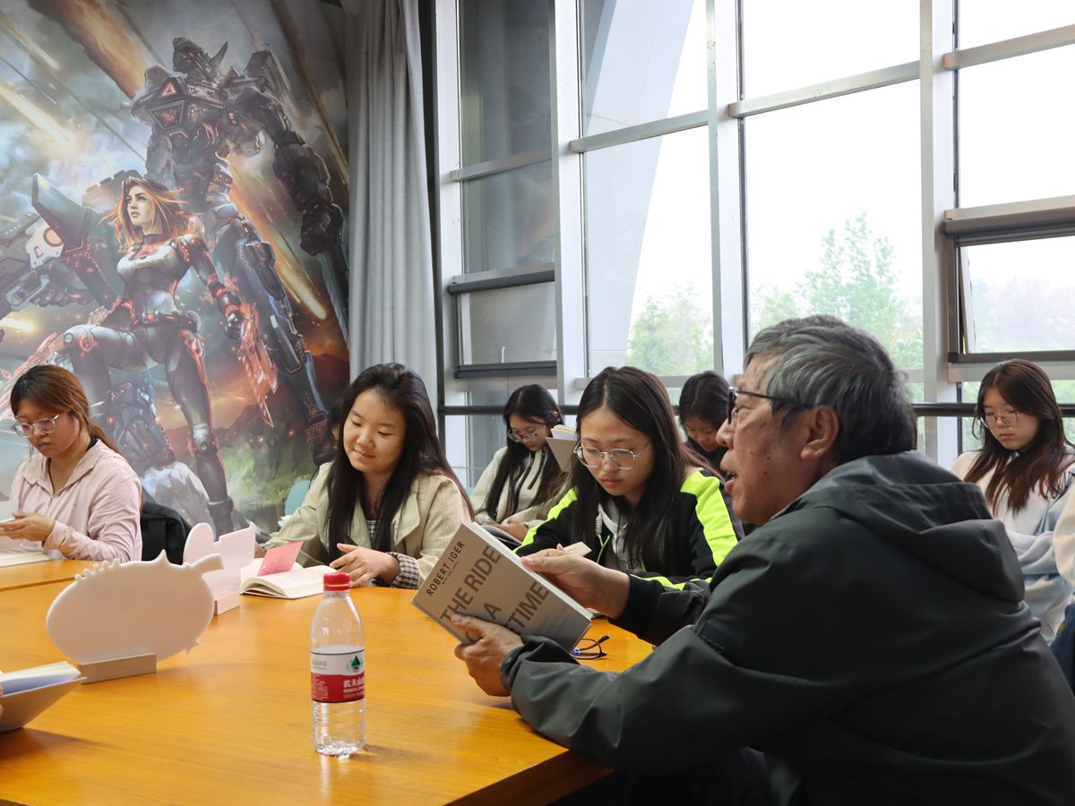 结束了摄影创作,张院长与同学们在书页中开启对话——共读罗伯特·艾格的自传《一生的旅程:迪士尼CEO自述》,以“传承与革新:一生的管理艺术之旅”为主题展开深度交流。张院长提到了“科技和艺术的阴阳结合,便是皮克斯的灵魂所在。所有一切,都源于此”,张院长指出,不管参加的学生学习什么专业,都可以对艺术有所追求。大家围绕书中的领导智慧、危机处理能力与持续创新精神踊跃发言,现场思想碰撞不断、金句频出。张院长结合自己数十年的从教与管理经历,真诚分享了如何在坚守优良传统的同时勇敢拥抱时代变革、如何在重重挑战中寻找并把握机遇的心得体会。张院长借用书中的话说道:“你必须保持谦虚。不能把自己佯装成另一个人,也不能不懂装懂。”