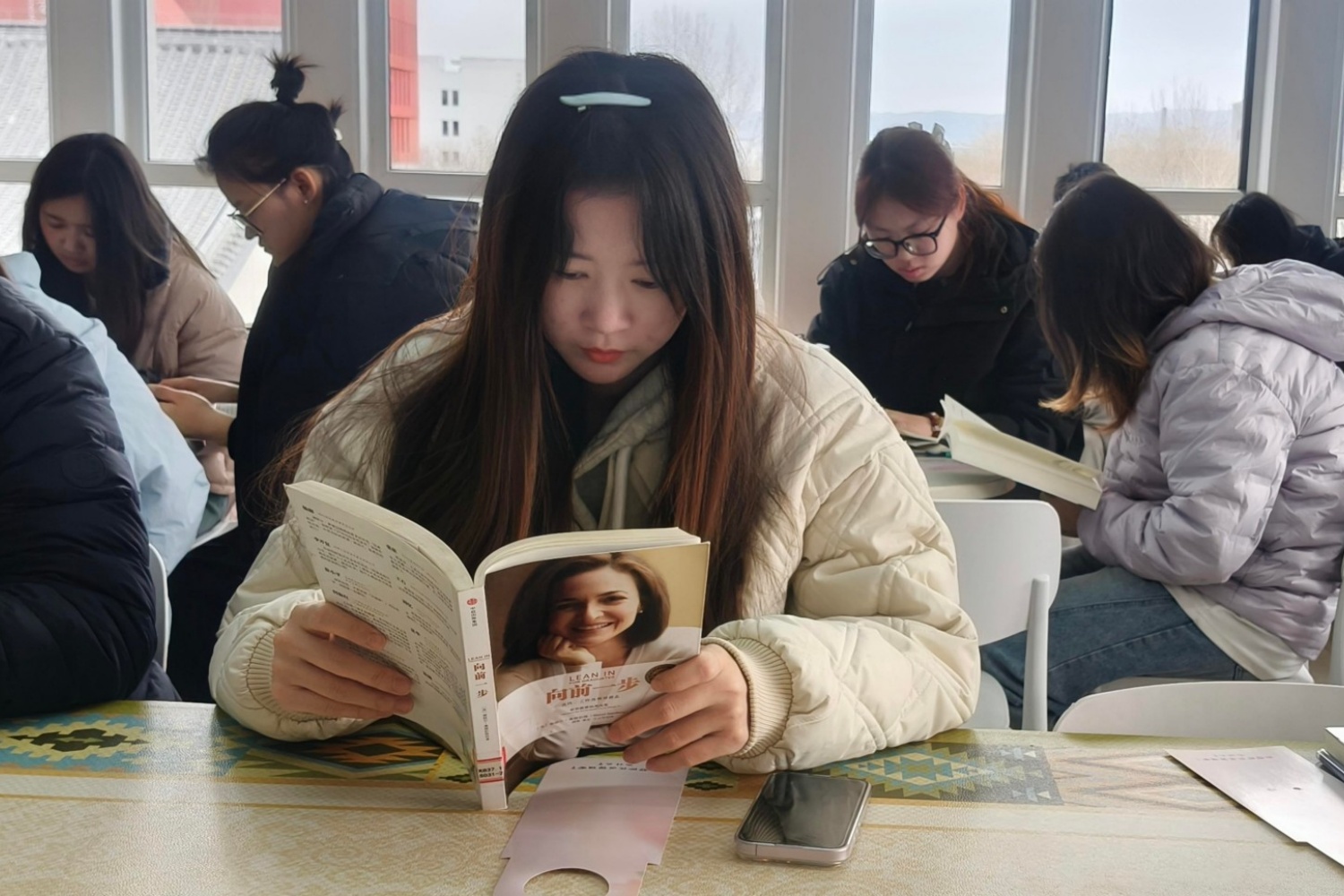 共读会渐近尾声,王老师以五种色彩,为同学们总结出谢丽尔·桑德伯格的人生道路——蓝色是她攀登学术与职场高峰时仰望的天空;红色是世人赋予她“女性楷模”“硅谷女权先锋”的炽热勋章;绿色是她从人生至暗时刻破土而出的韧性与新生;白色是她奔走半生、不改初心的纯粹;而黄色,是她转身时留给家人爱人的那一抹暖光。语落,她将最深的祝福赠予在场每一个人:“愿你们不抱怨、不退缩,自信且睿智,在岁月中温柔地坚持。”