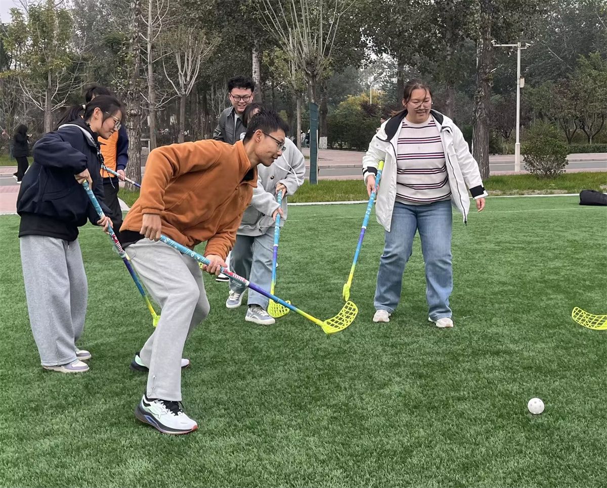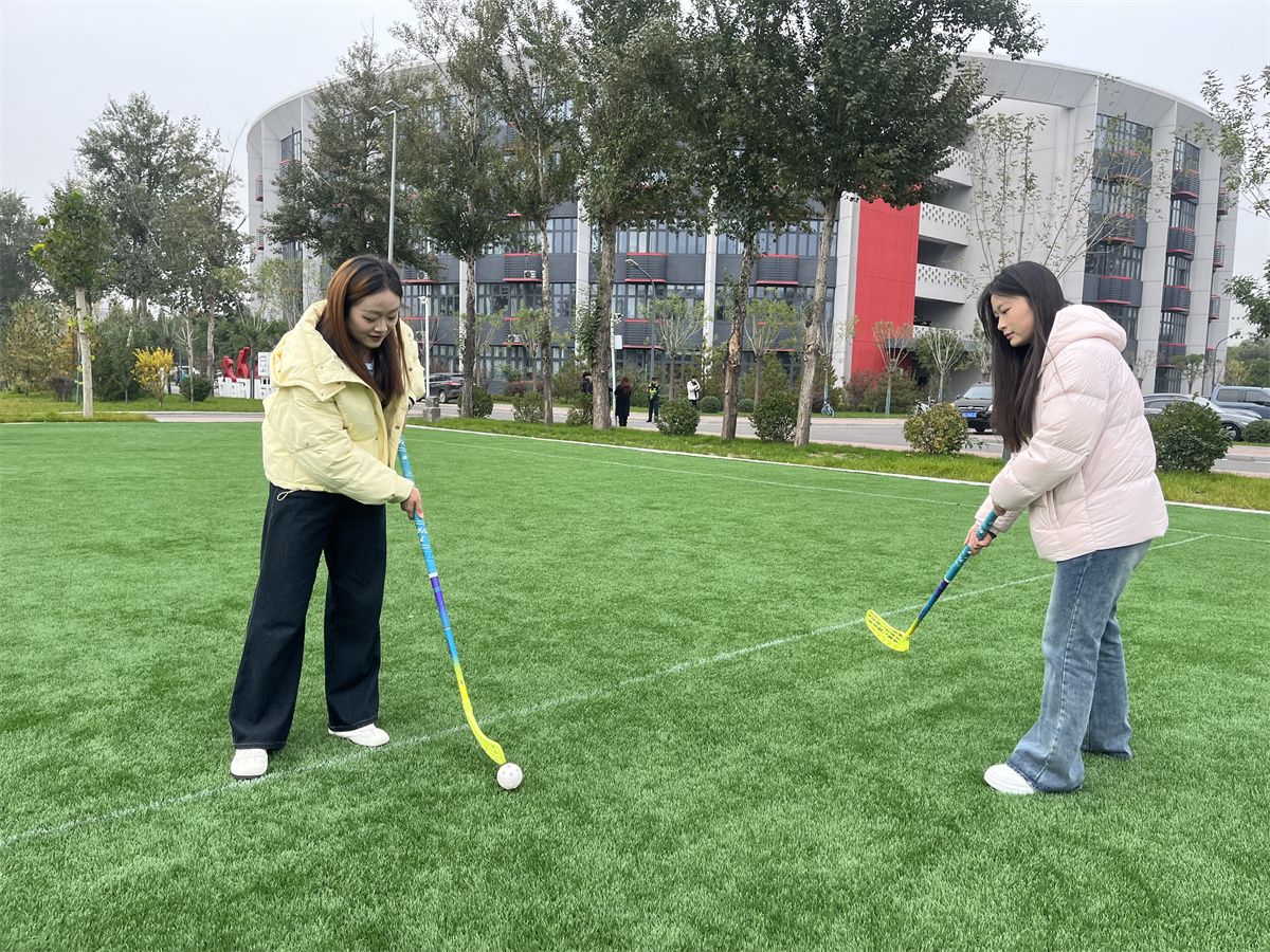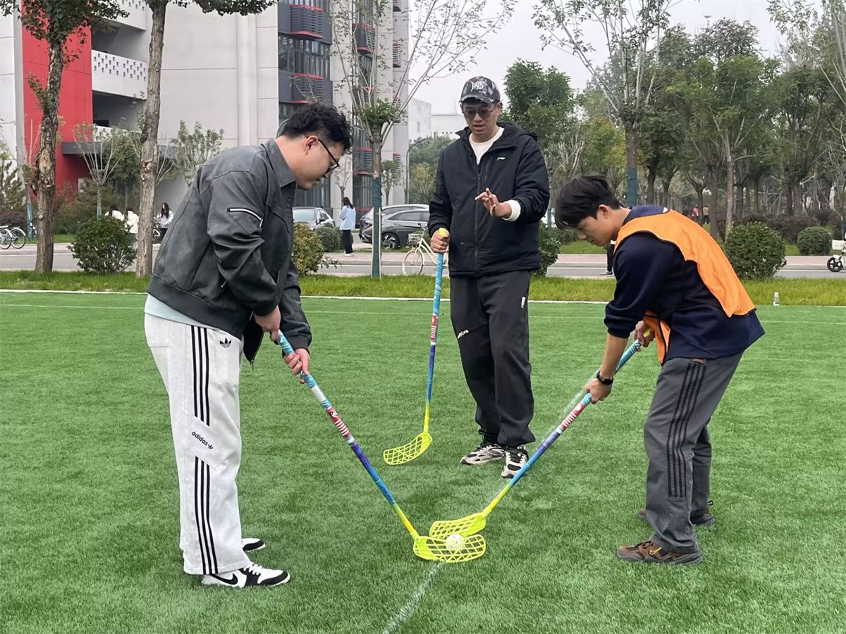 接着进行持杆、运球、射门三大技能分解训练,每一环节都藏着专注的密码。在持杆姿势教学中,薛思远老师重点讲解了握杆力度的控制技巧。他指导学生们:“握杆力度需要找到的平衡点是掌握这项技术的关键。”同学们在练习中不断调整,逐渐体会到细微力度变化带来的不同效果。