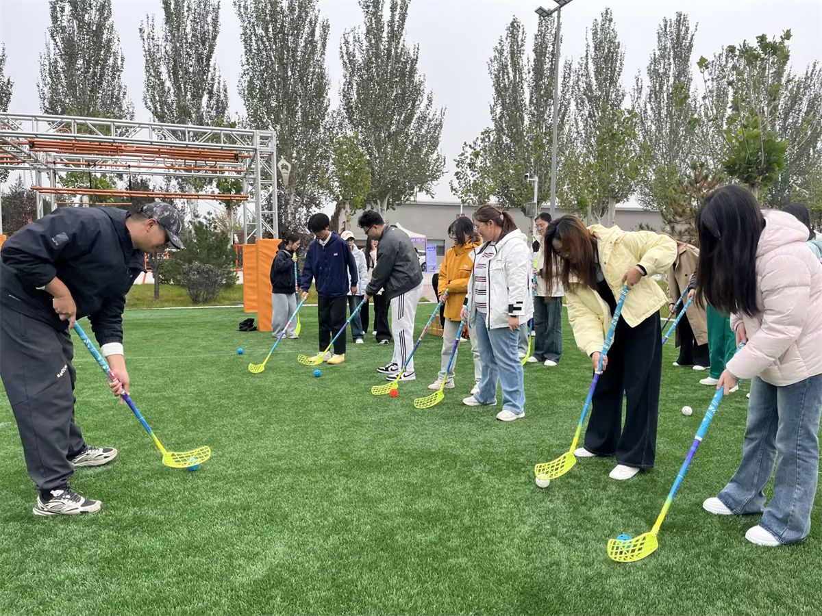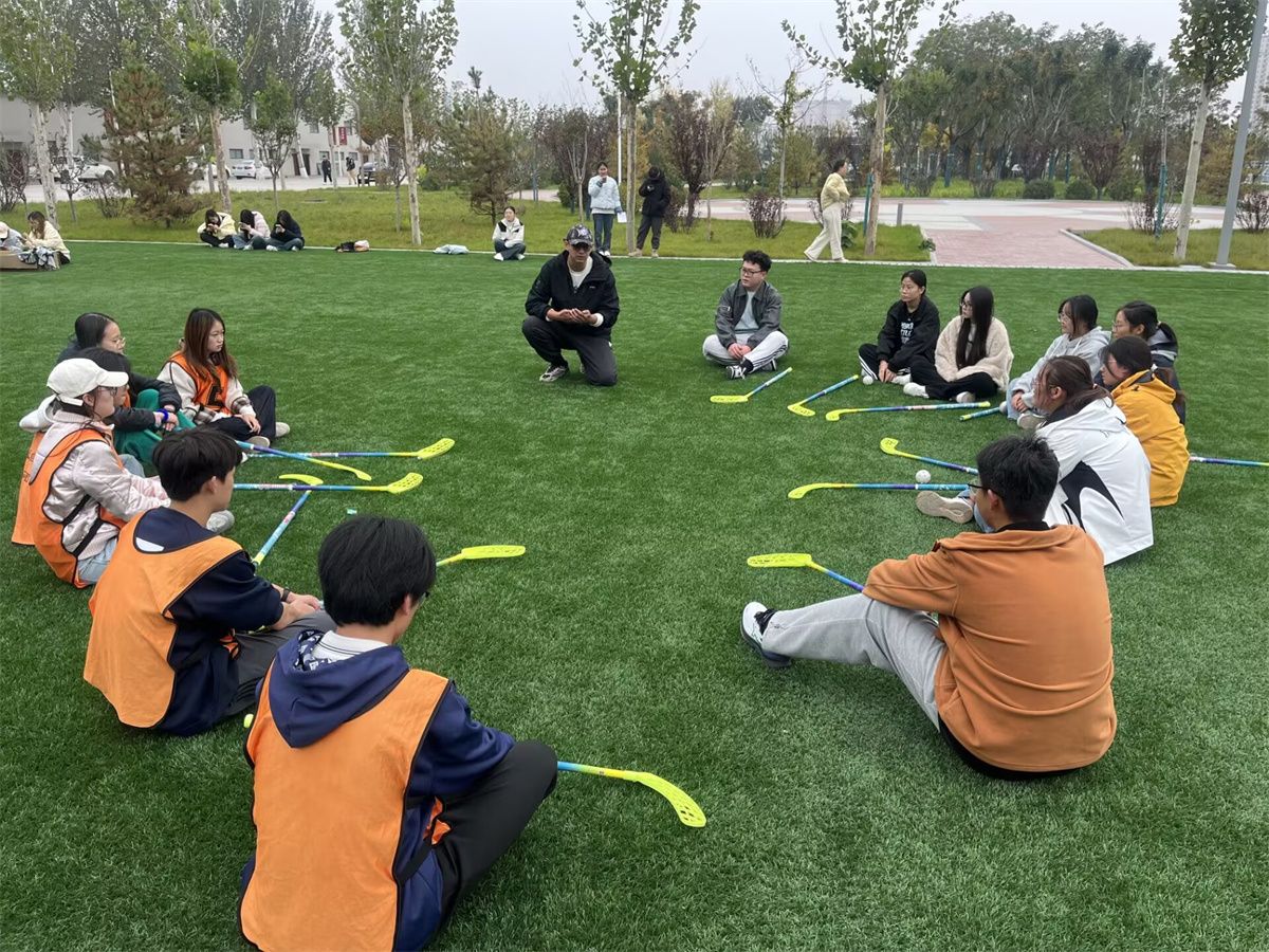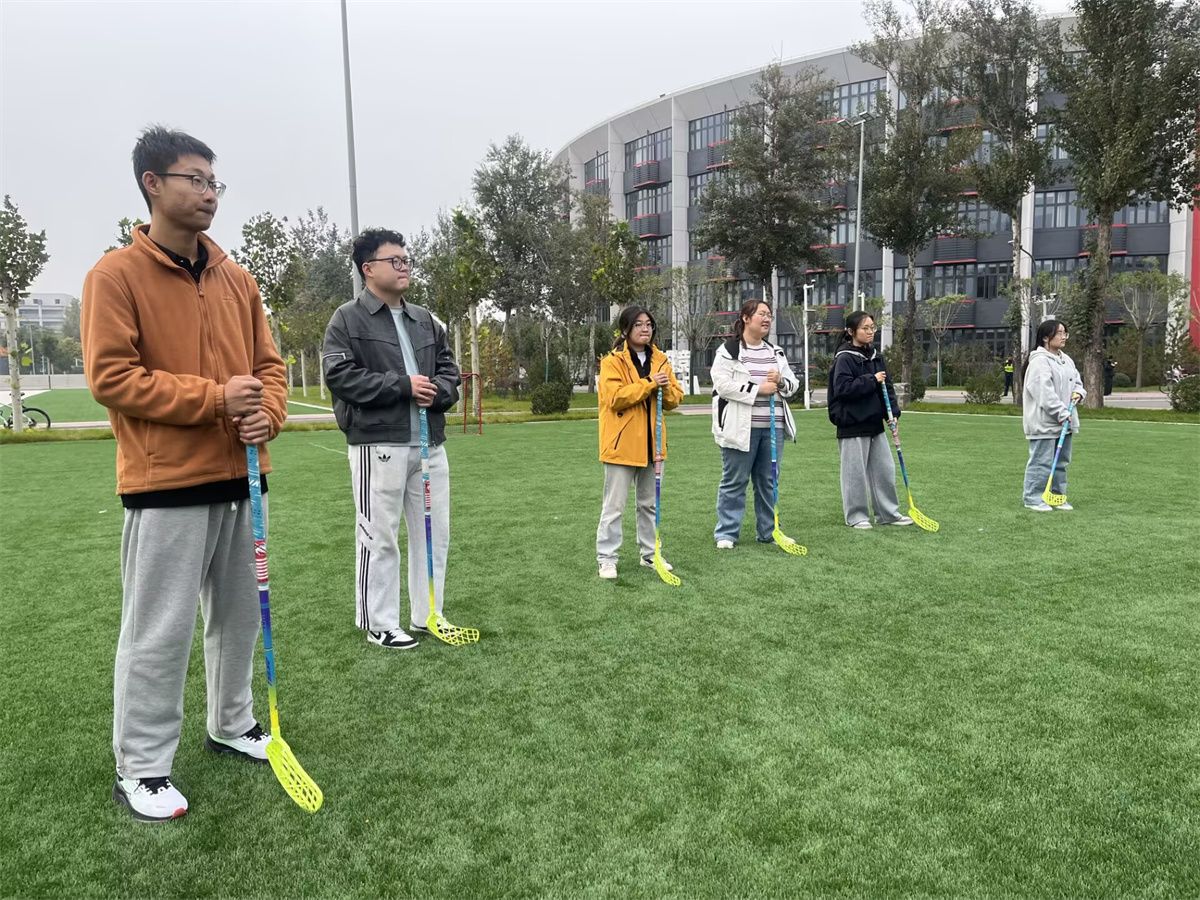 “请各位同学先到热身区集合”主持人综合事务部部长梁沐瑶详细介绍了相关流程安排和安全注意事项。随着热身环节的启动,学生们在薛思远老师的带领下,开始了为期15分钟的系统训练,他们手持球杆,来回缓慢拨球,这不仅是肌肉的唤醒,更是注意力的开机仪式。
