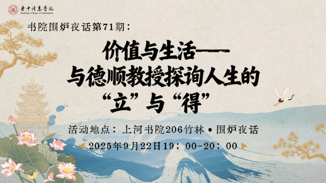 本期活动,李教授将与我们一同探讨“价值与生活”。在这里,你可以与教授近距离交流提出自己的困惑与见解;在这里,思维的火花将激烈碰撞,带你突破认知局限。在这里你将收获的不仅是知识更是对人生的全新思考,无论你是在人生道路上对未来职业迷茫的学子,还是对价值哲学充满兴趣的求知者这场书院围炉夜话都不容错过。