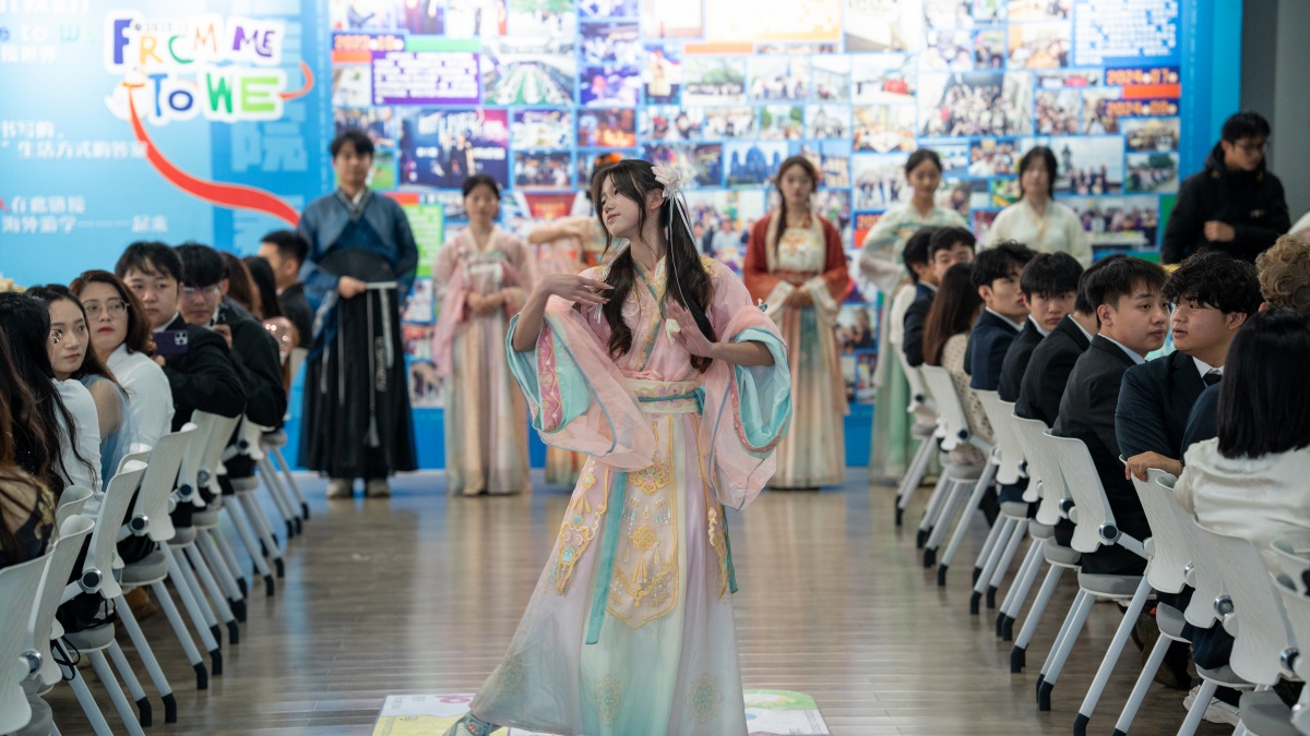 文化的对话在衣袂流转间悄然升温,《锦行》汉服秀以现代设计语言重构传统服饰之美,中华美学的雅致传承随衣摆流动,让中外师生直观感受中式韵味的独特魅力。