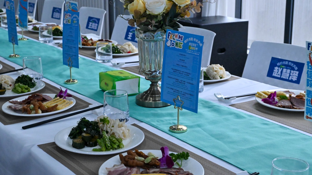 正午,阿信初雪轻扬,雪絮漫卷。上河书院208山河·赋能空间里笑语喧和,中外学子的多语种交融共振,跨文化相逢的鲜活暖意漫溢其间。12月12日中午,相约书院·校长共膳——阿信带你连接世界活动温情启幕,校领导及书院部、国际交流与合作处、信息工程学院等相关部门负责人、外籍教师代表、2026年暑期出国交流项目入选学生代表以及留学生们齐聚于此,在美食香韵、分享与艺术的多元交响中,共同勾勒出开放融通、文化互鉴的生动图景。