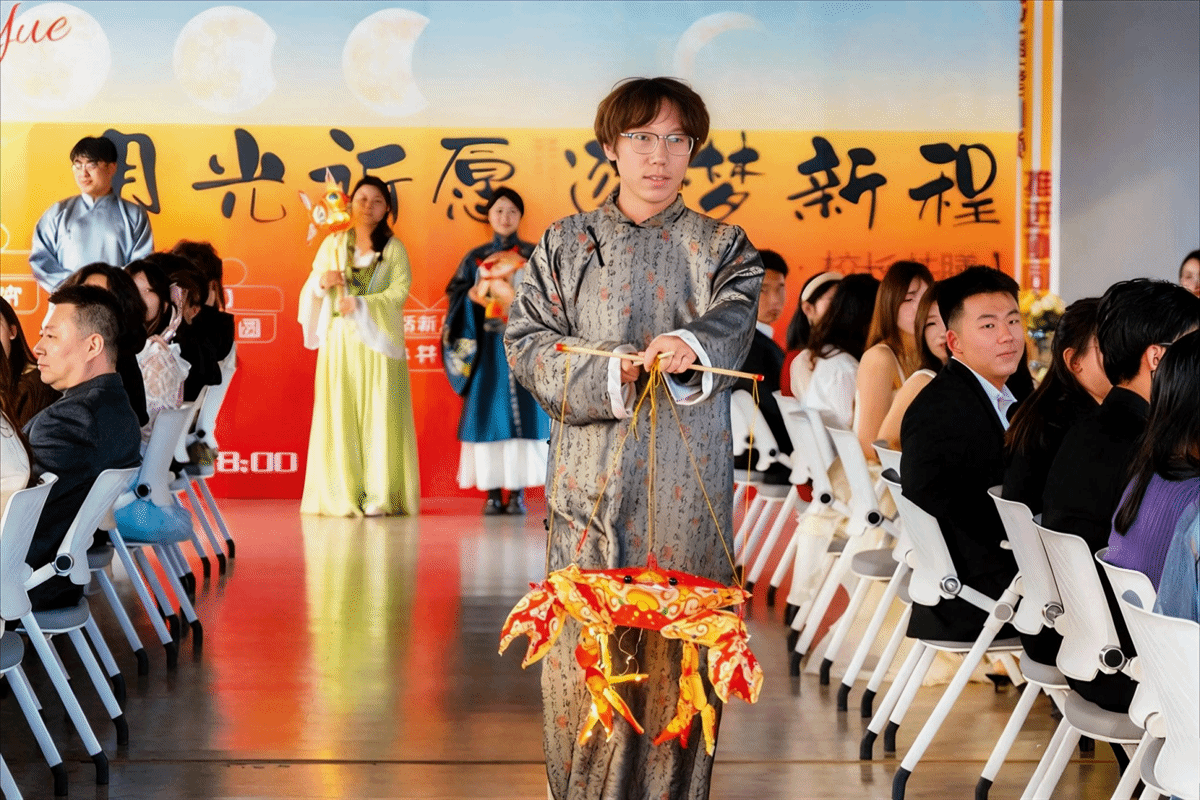 “南庄的火,太谷的灯,徐沟的铁棍爱煞人”,从一句民俗谚语开始,太行书院发展导师郭昕结合自身经历,分享了她记忆中三晋大地独特的元宵民俗与文化风情。郭老师从元宵节的起源讲起,从故事中触摸地域民俗的温度,在溯源中分享“灯火万家”的深意,同时通过现场民俗展演的形式,为各位嘉宾依次介绍了宫灯、鱼灯、螃蟹灯、滚灯等传统花灯的造型、工艺及寓意,不仅点亮了校园的节日氛围,更让传统文化在同学们手中焕发出新的生机。
