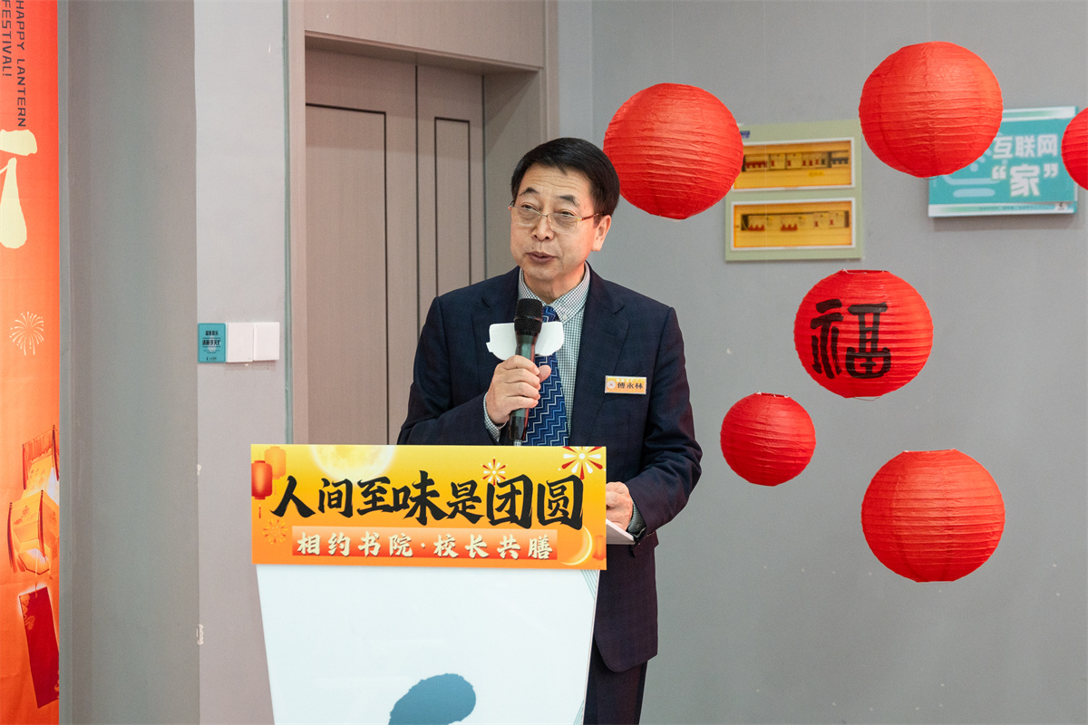活动伊始,参与者们领取“月光灯谜”,李鑫、赵子艺两位同学献上双人合唱《月亮代表我的心》,元宵文化之旅温馨启幕。随后,副校长傅永林为活动致辞,傅校长首先向远道而来的外省学子致以诚挚问候,并谈到“元宵节是新年首个月圆之夜,以‘人间至味是团圆’为主题,不仅代表我们像家人一样欢聚一堂,喜笑颜开,更代表大家在信院的一种生活态度,在每一个平凡的时光中都能找到生活的乐趣。”傅校长强调在“四位一体双院制”人才培养体系下,学校通过十大举措助力学生个性张扬与潜能发挥,各位学子在完满教育中要找到属于自己的“月亮”——无论是深耕热爱还是多元尝试,都要保持向上生长的力量,在师生共融的氛围中“友好地为所欲为,放肆地野蛮生长”。