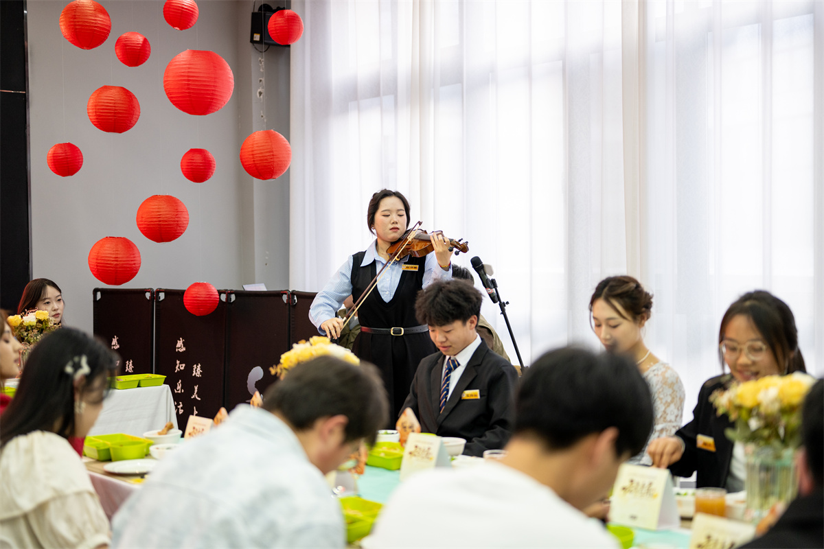 淬炼商学院·国际商学院侯智博:本次共膳让我度过了一个温馨又难忘的元宵节。活动现场布置精心雅致,处处洋溢着节日氛围,精致的摆盘、独具匠心的手工花灯展示,让人眼前一亮。萨克斯、小提琴与琵琶轮番演奏,中西乐器交融,旋律悠扬动人,为节日增添了别样韵味。每一处细节都尽显用心,既热闹又雅致。天南海北的同学欢聚一堂,大家沉浸在浓浓的气氛中度过了一个难忘的元宵节。