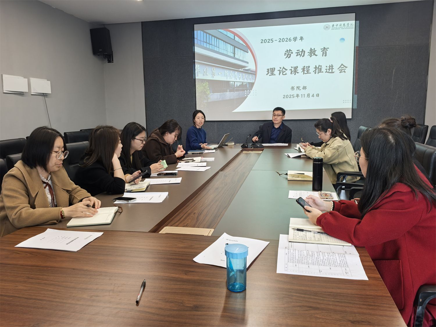 想让学生爱上劳动教育理论课程,老师得先吃透“方法论”,11月4日无边书院召集了全校14位劳动教育理论课程授课老师,围绕“怎么让学生爱上劳动教育课”“哪些章节作为重点”等问题展开讨论,老师们在互动教学设计、优化课程重点上达成了多项共识,为新学期课程的精彩呈现做足了准备。书院部部长李鹏鹏强调,要正确认识并高度重视劳动教育在大学生学习生涯中的价值与地位,课程不能仅停留在理论讲解,更要通过丰富多样的教学形式和内容设计,增强课堂的吸引力与感染力。无边书院综合办主任雷淼就劳动教育档案填写、学习通使用方法等方面进行解读,同时,明确了教学评价标准:不仅看学生的课堂表现,更关注劳动态度、合作能力和感悟收获,把抽象的教学要求变成可落地的课堂方案,期待在即将开展的让每一堂劳动教育理论课都有亮点、有深度、有温度。