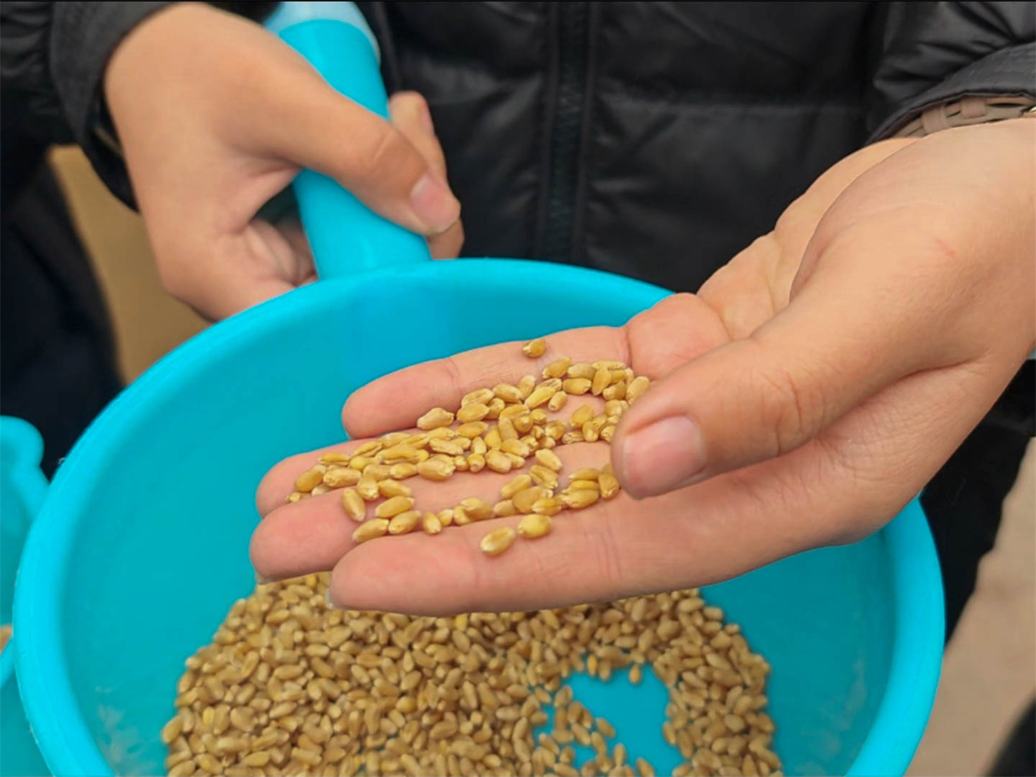 纸上谈兵不如躬身实践!在潇河书院的田间地头,11月7日一场热闹的冬小麦播种“实战”正式上线,熊师傅带领40余名同学分辨麦种、掌握撒种密度,并演示耕地、覆土的正确方法,“撒种要均匀,不能扎堆也不能太稀疏”“覆土不用太厚,刚好盖住麦种就行”。熊师傅边说边示范,弯腰、点种、覆土……仿佛与土地进行着一次无声的对话。金色的阳光洒在每个人身上,微凉的秋风拂过年轻的脸庞,同学们虽动作略显生涩,但神情专注,在泥土的芬芳中体会着劳动的重量,在协作中感受着集体的温度,鞋上虽然沾满了泥巴,额头也沁出了汗珠,但看着一行行被精心播下的冬小麦,一种与大地紧密相连的踏实感和对未来的期待在学生们心中油然而生。
