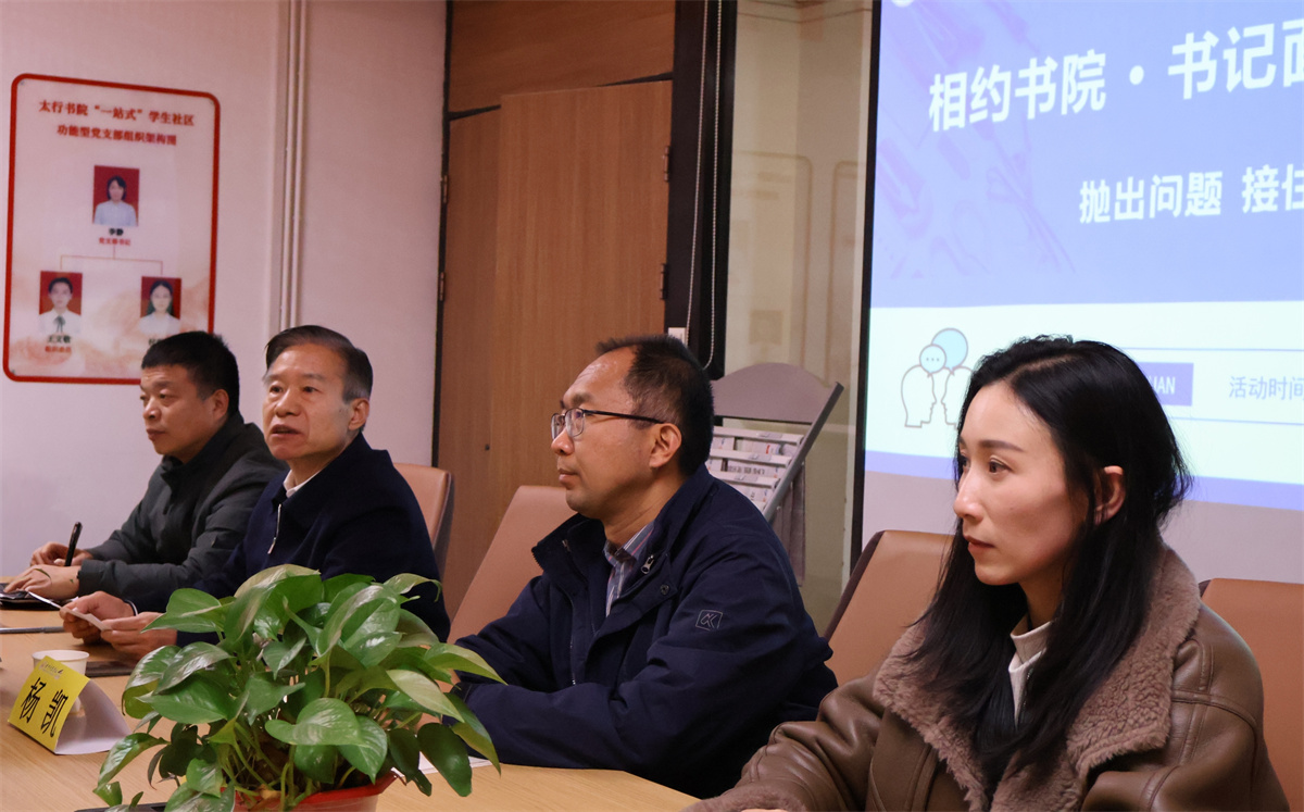 12月19日,一场以“抛出烦恼,接住困惑”为核心的深度对话,在晋中信息学院太行书院社区功能型党支部举办。学校党委书记张存伟、马克思主义学院院长杨凯、党委组织部副部长徐志强、学生处苏鑫、太行书院综合办主任李静与太行书院社区50余名学生代表围坐一堂,现场聆听学子心声,切实回应成长关切。第34期“相约书院·书记面对面”以“对话党委书记”“跟踪落实困惑”“树立先锋表率”三个环节串联,构建起零距离、高效率、有温度的“一站式”学生社区沟通平台。