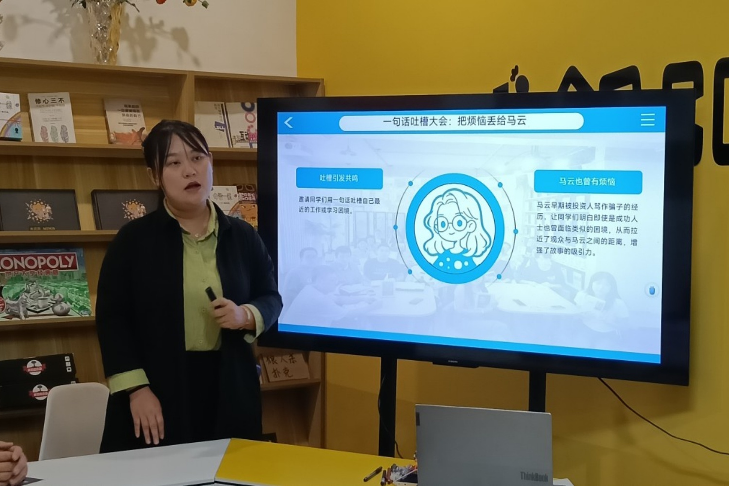 付老师首先以一组“马云表情包”创造了一个轻松的氛围。从“后悔创建阿里”到“双十一剁手预警”,这些网络梗背后,实则是马云创业历程中真实的情感切片。付老师巧妙引导同学们思考:一个被无数人神话的商业领袖,其实也有着普通人的焦虑与自嘲。当同学们分享起自己“小组作业遇划水”“改了二十遍的论文最后选用第一版”的日常困境时,马云的形象也不再遥远——原来成功者也曾面临相似的窘境。