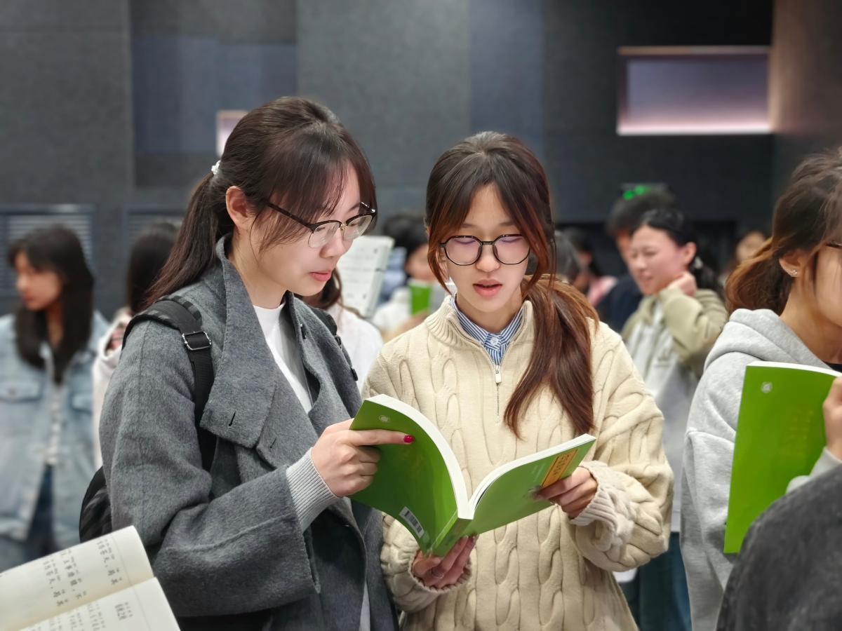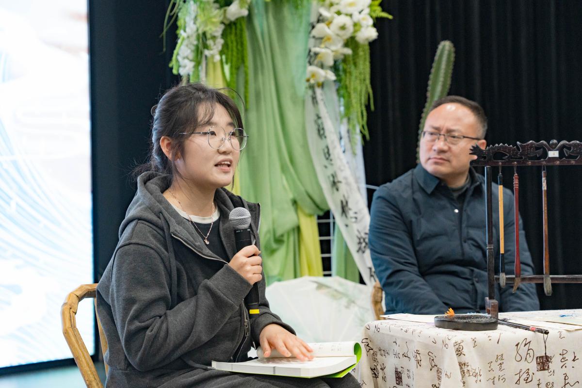 “风”以观民情,雅”以正天下,“颂”以告神明。这不仅是《诗经》的体例划分,更是古人对世间万象的回应方式。上午10点,在见山剧场的舞台上,“读一本书是一辈子的事儿,一辈子要把一本书读懂。”薛院长以这句话作为《诗经》围读的开场,提议大家分别以泛读、精读、演读三个层次递进式分享手中这本文化经典。薛院长运用《诗经》的不同篇章将现场50位同学分为5个小组,每个小组自主选择喜欢的诗篇在泛读后围绕“这首诗篇带给我们本身的意境是什么?在今天我们该如何理解它?未来对我们的生活有什么样的启发?”三个维度进行精读与分享。