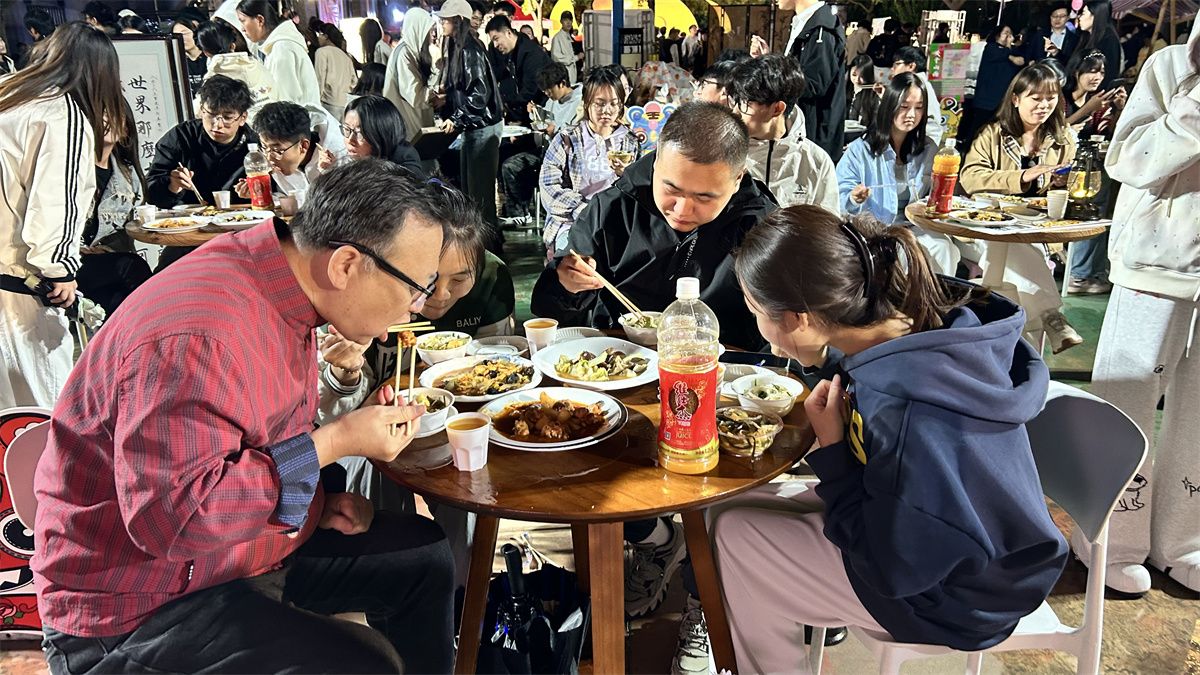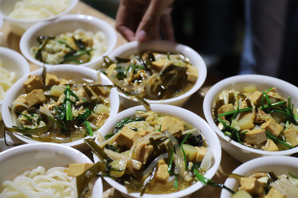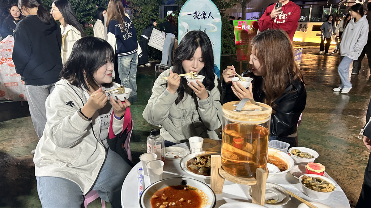 “香喷喷的打卤面出锅喽!”主持人一声充满烟火气的吆喝刚落,端着热气腾腾长寿面与山西特色菜肴的工作人员鱼贯而出,依次向寿星们呈上杏花书院精心为大家准备的特色美食。“这碗面,真的太香了!我第一次过这样的集体生日会,太幸福了。”“这桌菜,让我在异乡感受到了家的味道。好开心呀。”这碗裹着暖意的面,这桌满是晋味的菜,不仅让天南海北的同学们在校园里寻到了熟悉的“家味”,更让这份跨越千里的温暖,悄悄融进了每个人心里。