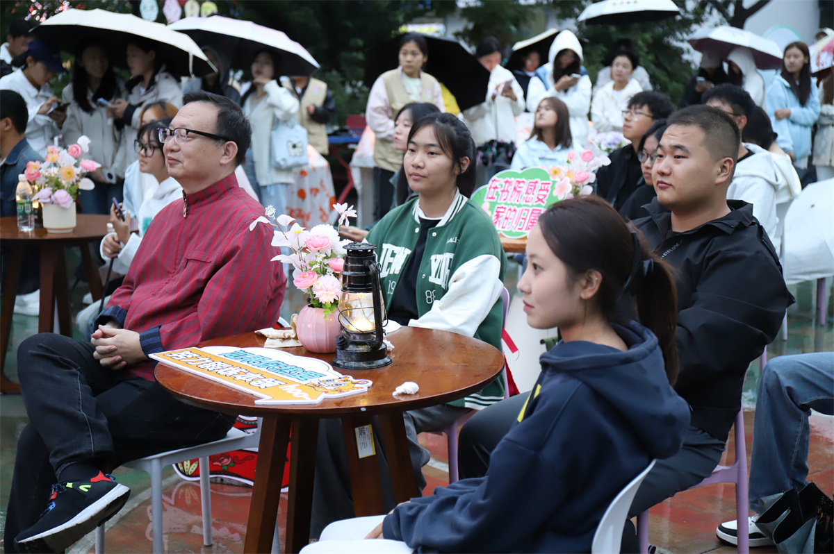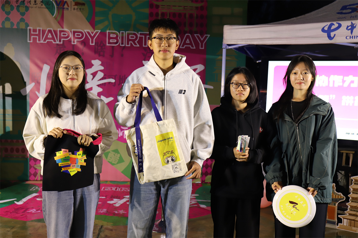 五颜六色,造型别致的花馍是山西非遗的代表作之一。摇曳的烛光里,杏花书院名誉院长高昂推着花馍蛋糕一出场,全场目光瞬间聚焦。随后,高老师为寿星们送上最真诚的生日祝福“来到信院,大家最不缺的就是快乐,希望大家在信院放肆地玩耍,祝寿星们生日快乐!”而“随手清理桌面垃圾”“感谢身边同学或老师”“给身边寿星一句祝福”等“责任力·隐藏任务挑战”,则悄然在传递温暖关怀与责任意识,“原来责任就是把每件小事都做好”,大家在践行责任时也收获了满满的幸福感。