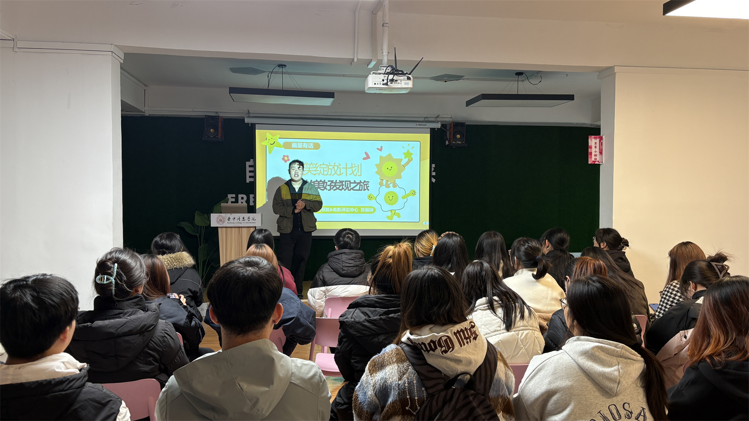 为帮助同学们在快节奏生活中摆脱内耗、捕捉美好,10月21日18:00杏花书院联动电影评论中心张振帅老师于表达力大厅开展了画里有话第19期:微笑绽放计划——开启你的美好发现之旅,本次活动以主动觉察生活美好为核心,通过电影赏析与心理实践结合的方式,带领大家学习如何为心情“采光”,将这份能力转化为可延续的生活习惯,并掌握在日常生活中觉察美好的方法,让生活在细微处焕发温暖底色。