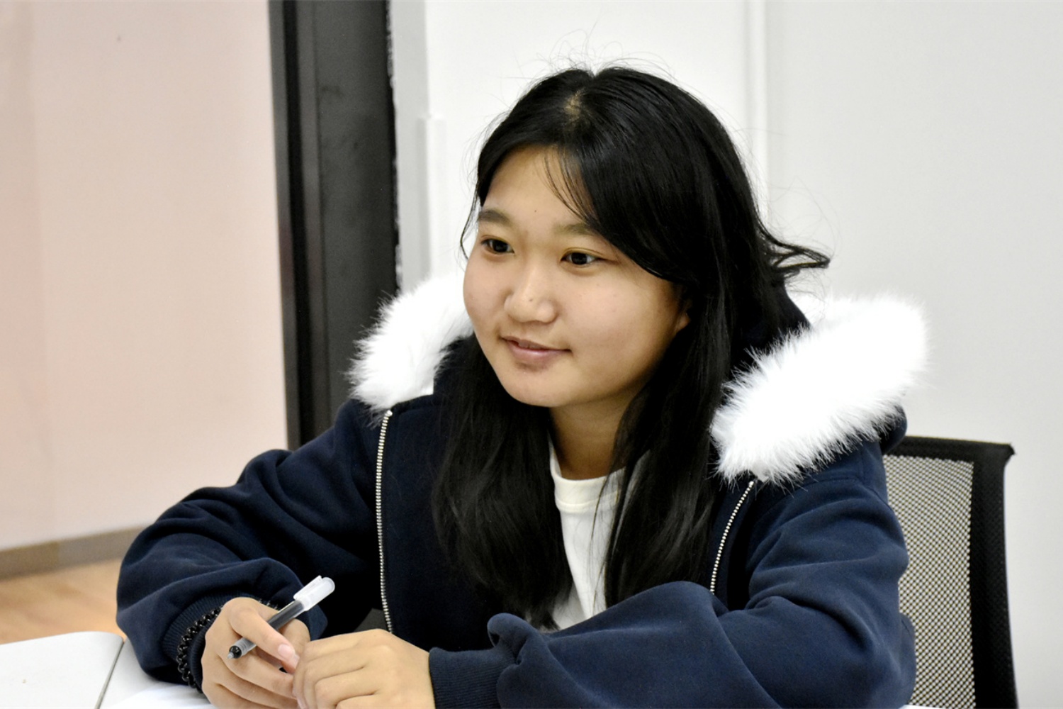不被定义,故能自成一格。不逐潮流,方能引领时尚。为帮助同学们进一步主动表达,聂宁老师邀请同学们分享自己喜爱的时尚风格,并对现场同学的穿搭进行点评。她从发型、配饰、服装搭配等方面入手,分析如何通过细节打造时尚感。例如颜色搭配的重要性,黑色与白色、红色与绿色等对比色的运用可形成视觉亮点,配饰如项链、耳饰在整体造型中的点缀作用,即使是简单的卫衣、T恤,也能通过配饰提升时尚度。同时,聂宁老师还分享了自己的穿搭思路“今天我内搭黑色羊毛衫,外穿深蓝色编织外套,整体色系偏沉闷,所以用一条亮面金属项链做点缀,既呼应了秋冬的质感,又希望能打破单调。”