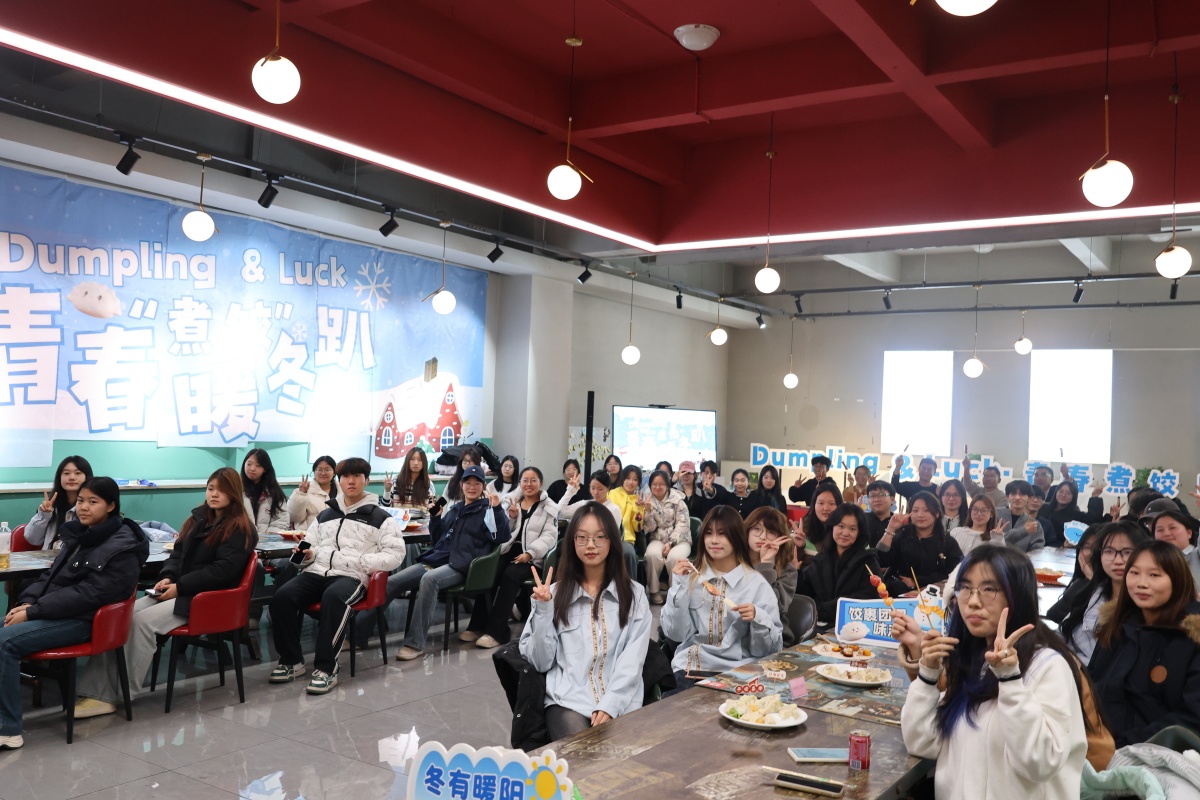 岁暮天寒,暖意氤氲。12 月 10 日,箕城书院联合后勤处举办 “Dumpling & Luck・青春‘煮饺’暖冬趴” 活动,后勤处处长吕常久、书院名誉院长陈凌岳等嘉宾与师生齐聚一餐厅二楼,共赴暖冬之约。活动现场,陈凌岳院长的身影始终穿梭在温情场景中,与吕常久处长共执笔墨,在“九九消寒图”上落下开篇之笔,以传统雅韵寄托冬去春来的期许。从“颜艺”签到的创意迸发、后厨探秘的匠心见证,到揉面、擀皮、包馅的饺子制作、“幸运饺”里的福运惊喜,再到非遗集市中对联挥毫、香囊巧作的文化浸润,院长的全程陪伴,让这场冬日之约不仅有烟火温情,更有成长路上的暖心指引。