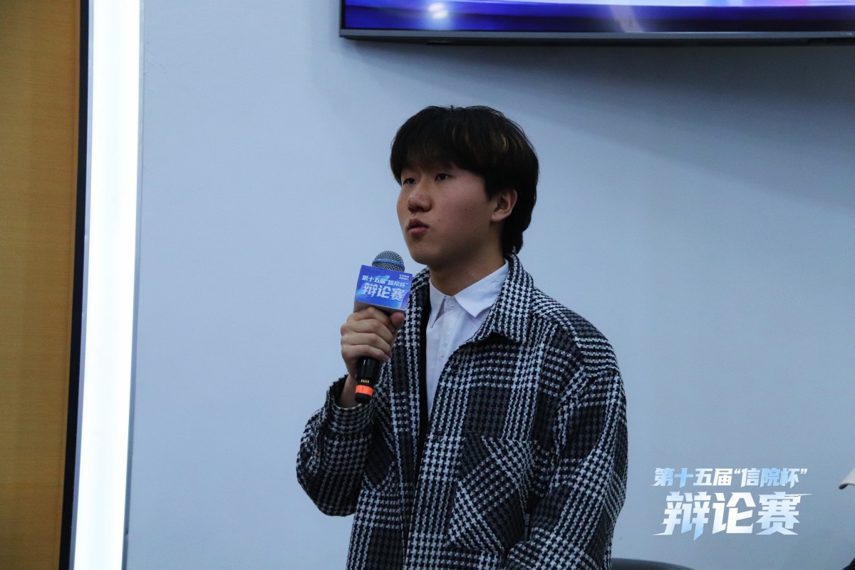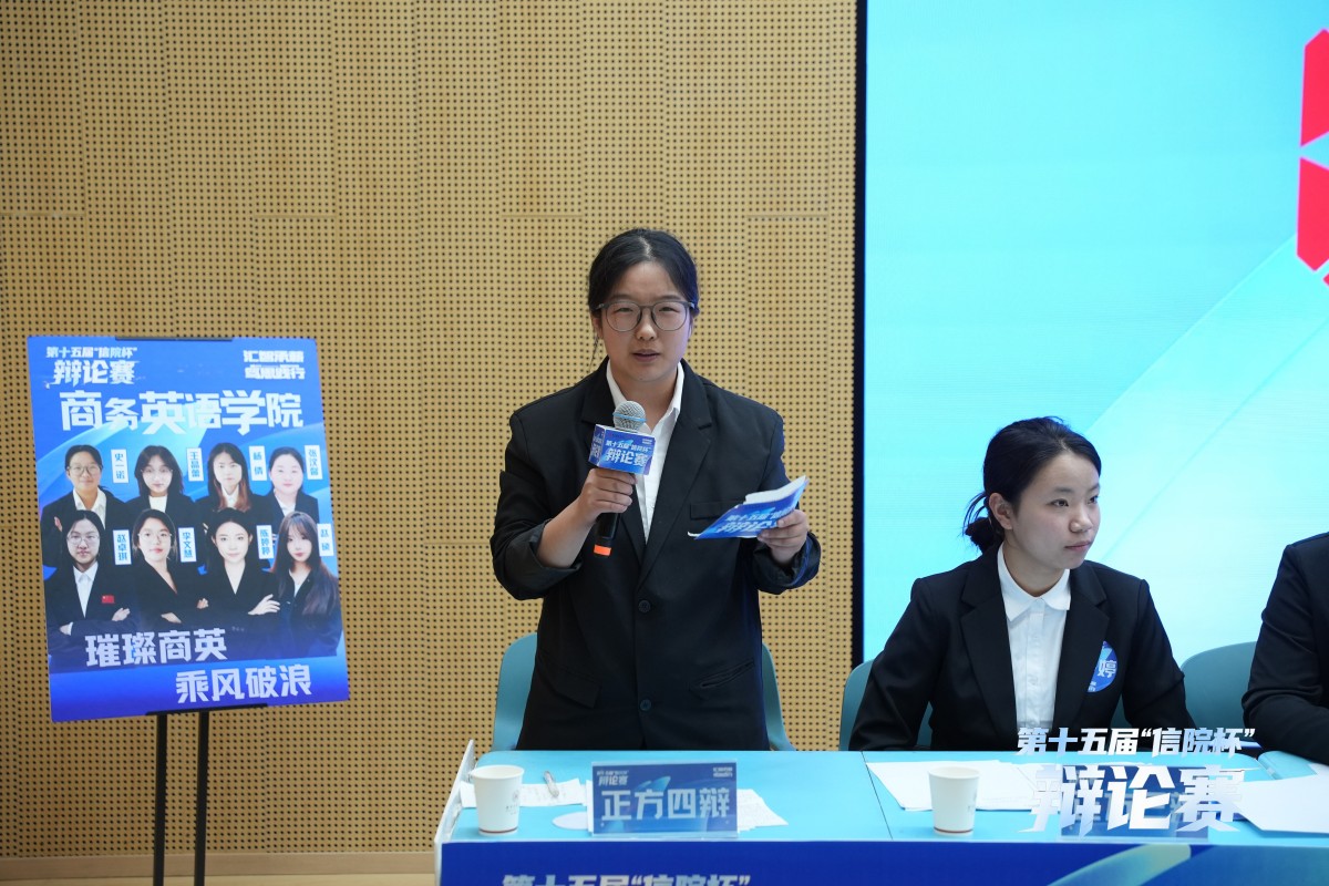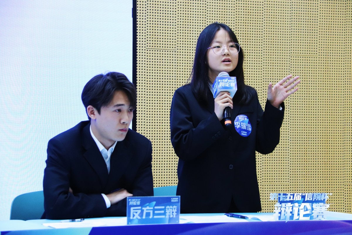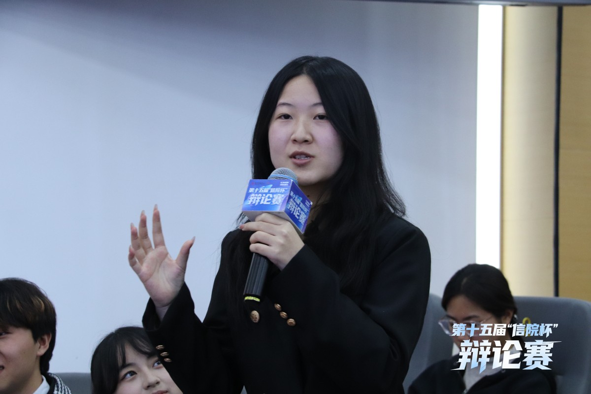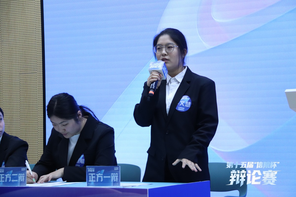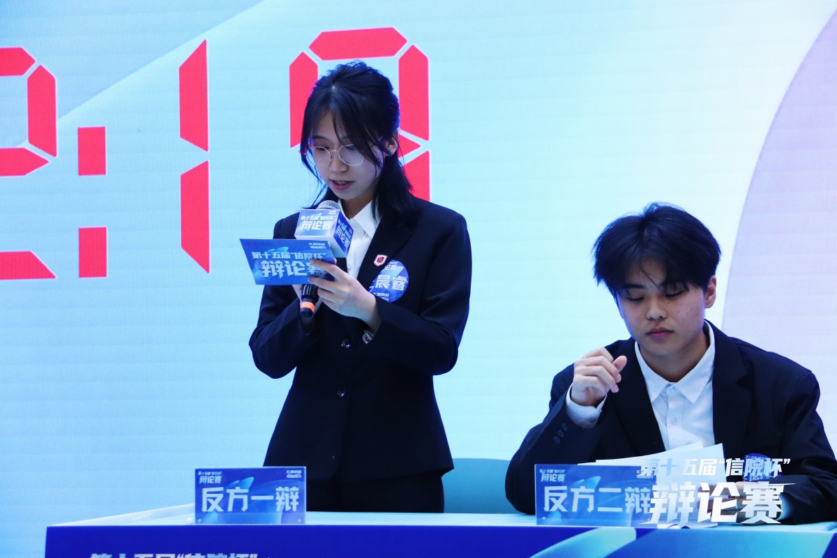 第十五届“信院杯”辩论赛的赛场,是辩手们进阶成长、展现实力的舞台。从小组循环赛的精准攻防,到决赛的巅峰对决,再到AI跨界辩论的创新尝试,每一场比拼都彰显着信院辩手的专业素养与思辨深度。赛场上辩手褪去青涩,以严谨的逻辑、流畅的表达,将青年对时代的思考、对价值的坚守融入辩词,在思想碰撞中锤炼自我、共同成长。