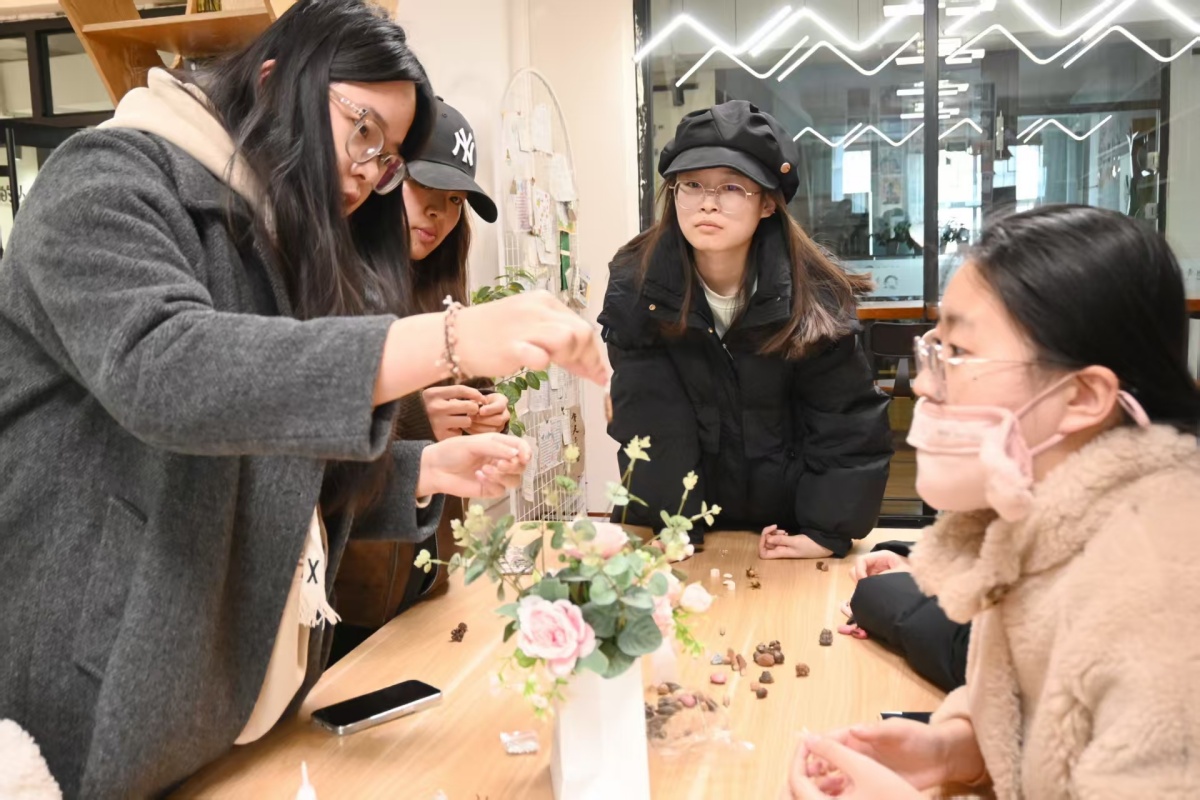 当干枯的中药果实褪去药用属性,当闲置的植物元素遇上创意巧思,12月3日14:30,“为自然‘定价’”手工创意活动在青藤书院102 大咖·故事里温情上演。活动连接创意与传承,让苍耳子、枸杞干、山楂干等本已“完成使命”的植物果实重获新生。同学们的巧手让这些自然之物焕发别样光彩,既挖掘了其深层价值,也传递出“物尽其用、循环美好”的生活理念。