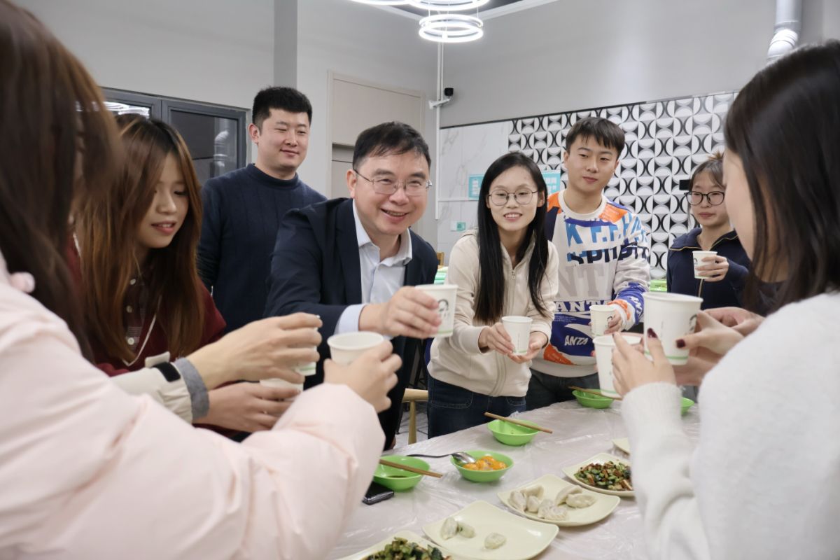 一盘盘形态各异的饺子被热腾腾地端上桌,同时为兼顾不同地域师生习俗,书院还贴心准备了“南北合宜”的冬至汤圆。大家围坐下来,笑着辨认“这是谁的杰作”,然后一起动筷品尝。书院名誉院长、发展导师们也和大家一同聊风味,拉家常。碗中升起的热气,映着一张张笑意盈盈的脸,有品尝的满足,也有分享的喜悦。这一餐或许不那么“完美”,却因为亲手制作而格外珍贵。这个夜晚所蕴含的包容、分享与靠近,也会在真实的温度中长久留存。