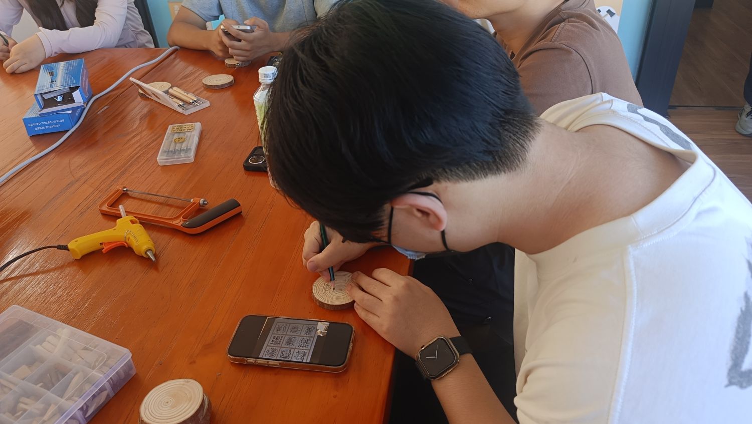 9月10日16:00,无边书院项目工坊劳动工匠工作室于204鲁班·木艺工坊举行了【工坊技能提升】第206期:刻时光·谢师恩木片雕刻创意活动。活动中,同学们以木片为创作载体,充分发挥创意与巧思。有的同学用颜料细致描绘,精心勾勒出象征师生情谊的花朵、蜡烛等图案,色彩搭配和谐,充满巧思;有的同学则手持刻刀,专注地在木片上镌刻“师恩难忘”“桃李情深”等真挚话语,一笔一画都饱含着对老师的敬意。参与者亲手制作专属贺卡与纪念牌,每一件作品都凝聚着真诚的心意,用暖心行动表达对老师的感恩,深化了师生间如家人般的情谊。