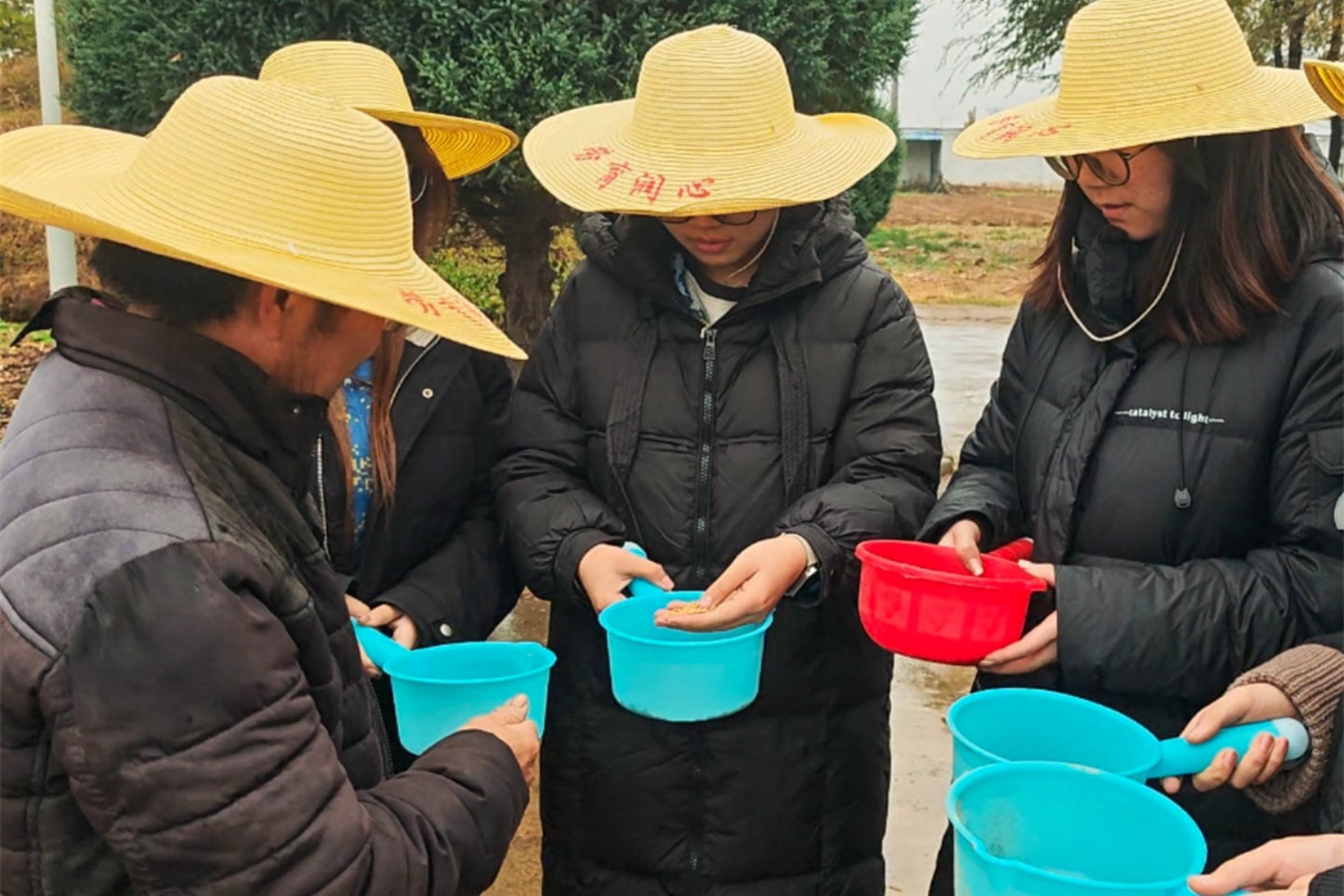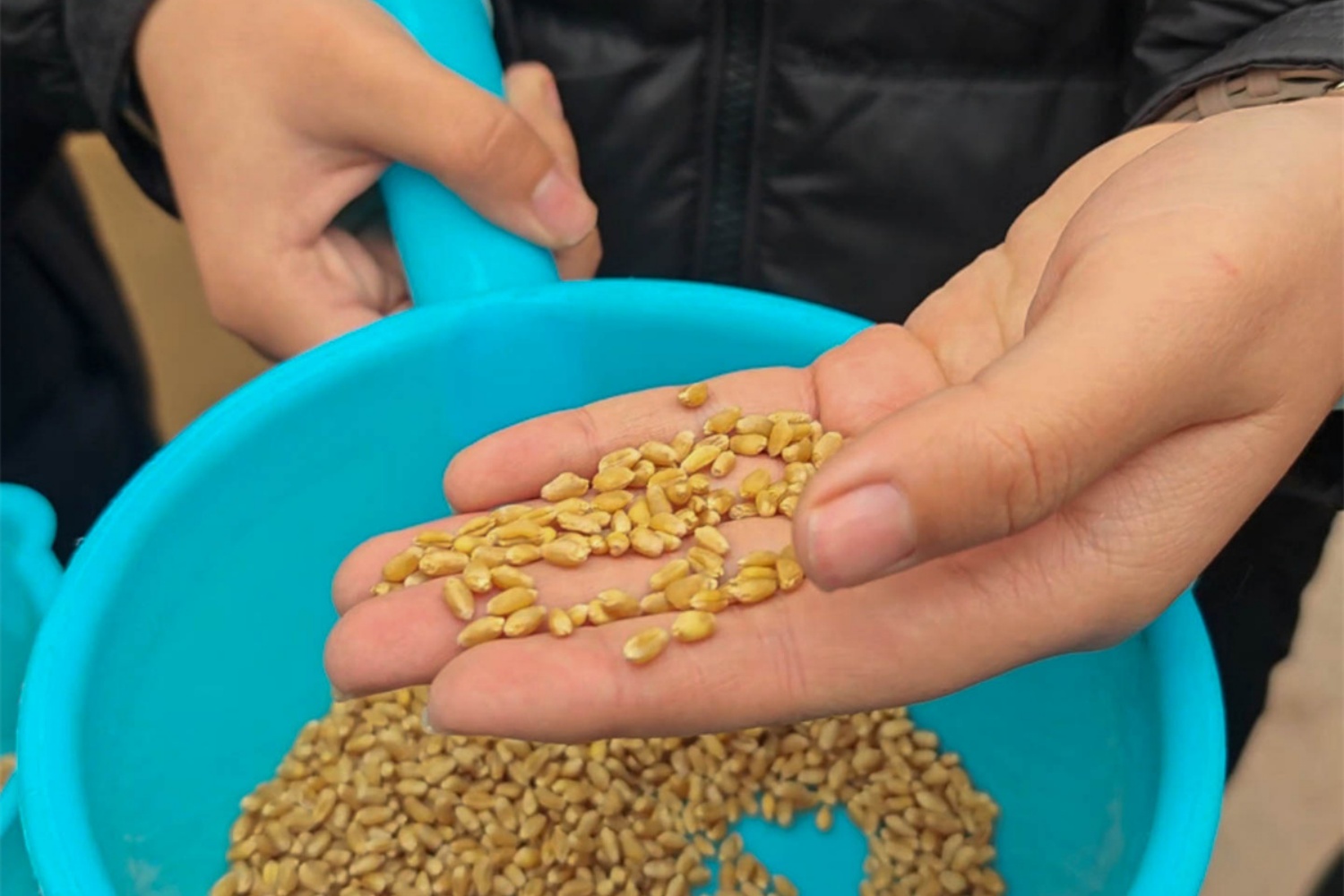 纸上谈兵不如躬身实践!在潇河书院的田间地头,11月7日一场热闹的冬小麦播种“实战”正式上线,熊师傅带领40余名同学分辨麦种、掌握撒种密度,并演示耕地、覆土的正确方法,“撒种要均匀,不能扎堆也不能太稀疏”“覆土不用太厚,刚好盖住麦种就行”。熊师傅边说边示范,弯腰、点种、覆土……仿佛与土地进行着一次无声的对话。金色的阳光洒在每个人身上,微凉的秋风拂过年轻的脸庞,同学们虽动作略显生涩,但神情专注,在泥土的芬芳中体会着劳动的重量,在协作中感受着集体的温度,鞋上虽然沾满了泥巴,额头也沁出了汗珠,但看着一行行被精心播下的冬小麦,一种与大地紧密相连的踏实感和对未来的期待在学生们心中油然而生。